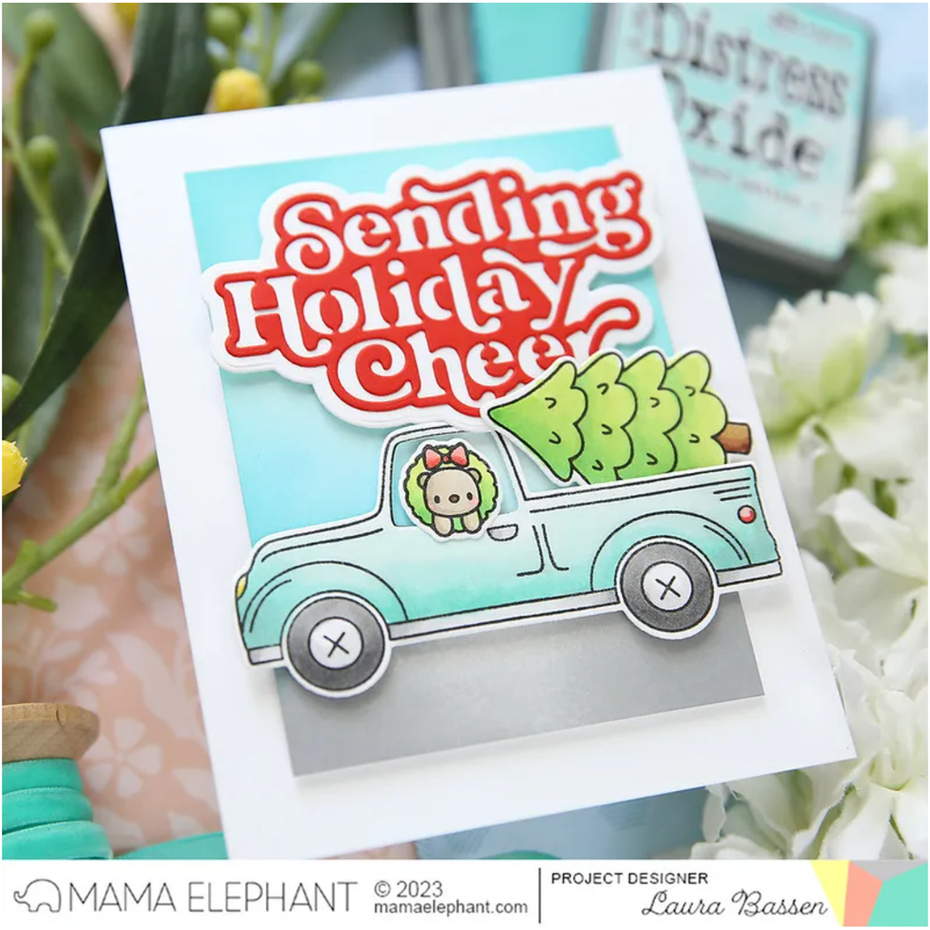 The Mama Elephant Holiday Happiness Creative Cuts Steel Dies, known as Holiday Happiness - Creative Cuts, are stand-alone dies. This set includes two sentiment dies and outline dies with the following approximate measurements:
