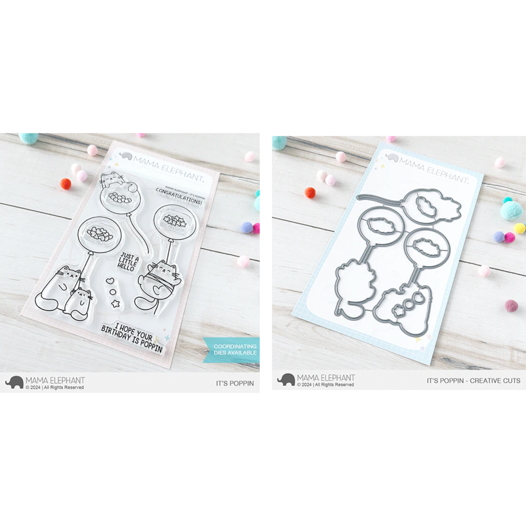Introducing the Mama Elephant It's Poppin Clear Stamps and Die Set, a fantastic bundle that includes both the clear stamps and coordinating dies for seamless crafting.