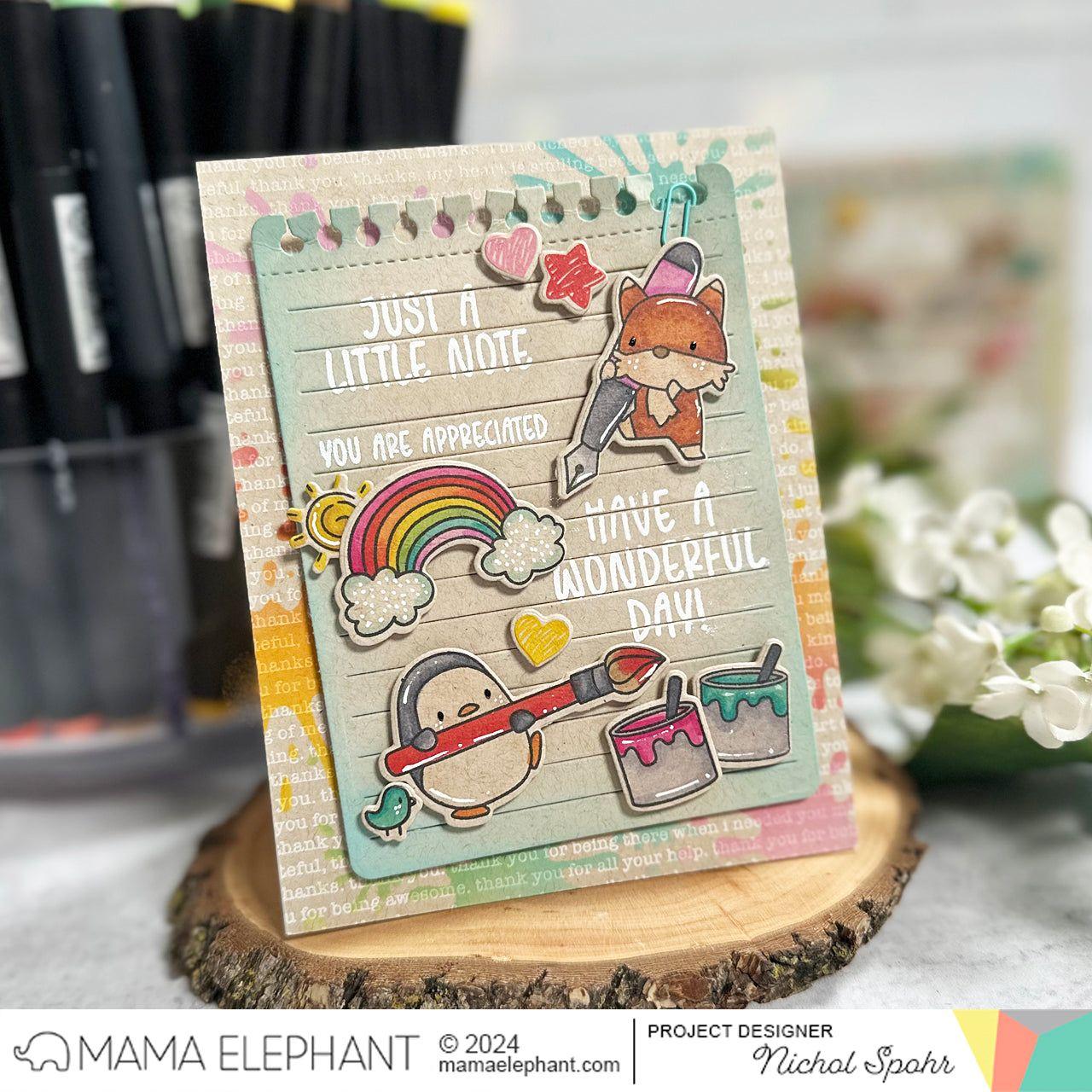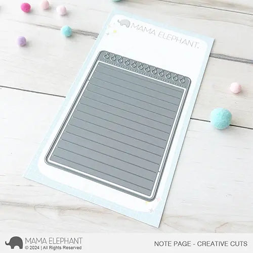 The Mama Elephant Note Page Creative Cuts Steel Dies offer a delightful addition to your back-to-school projects. This set includes two dies: one featuring the outline of a spiral notebook and the other with lines to complete the page. With approximate measurements of 3.5 x 4.75 inches, these dies are ideal for creating charming and whimsical accents for your crafts. Whether you're making cards, scrapbook pages, or other paper crafts, these dies add a playful touch to your designs.