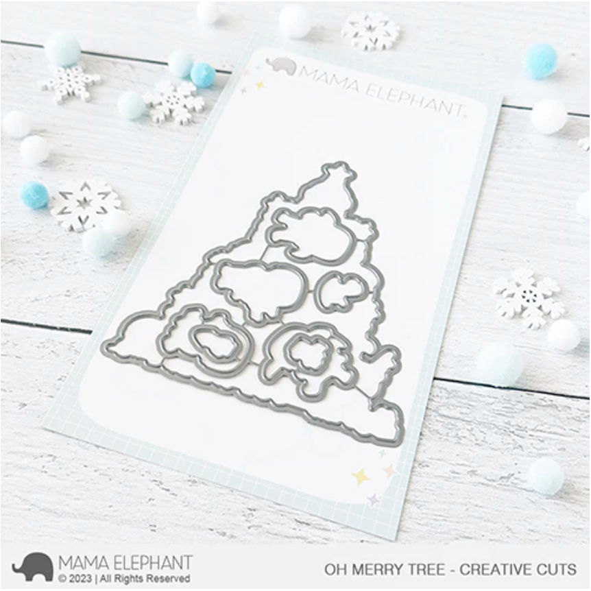 The Mama Elephant Oh Merry Tree Creative Cuts Steel Dies are designed to perfectly complement the OH MERRY TREE Stamp Set. This set includes 8 die cuts that are essential for creating the ideal holiday project, making your crafting experience seamless and enjoyable.