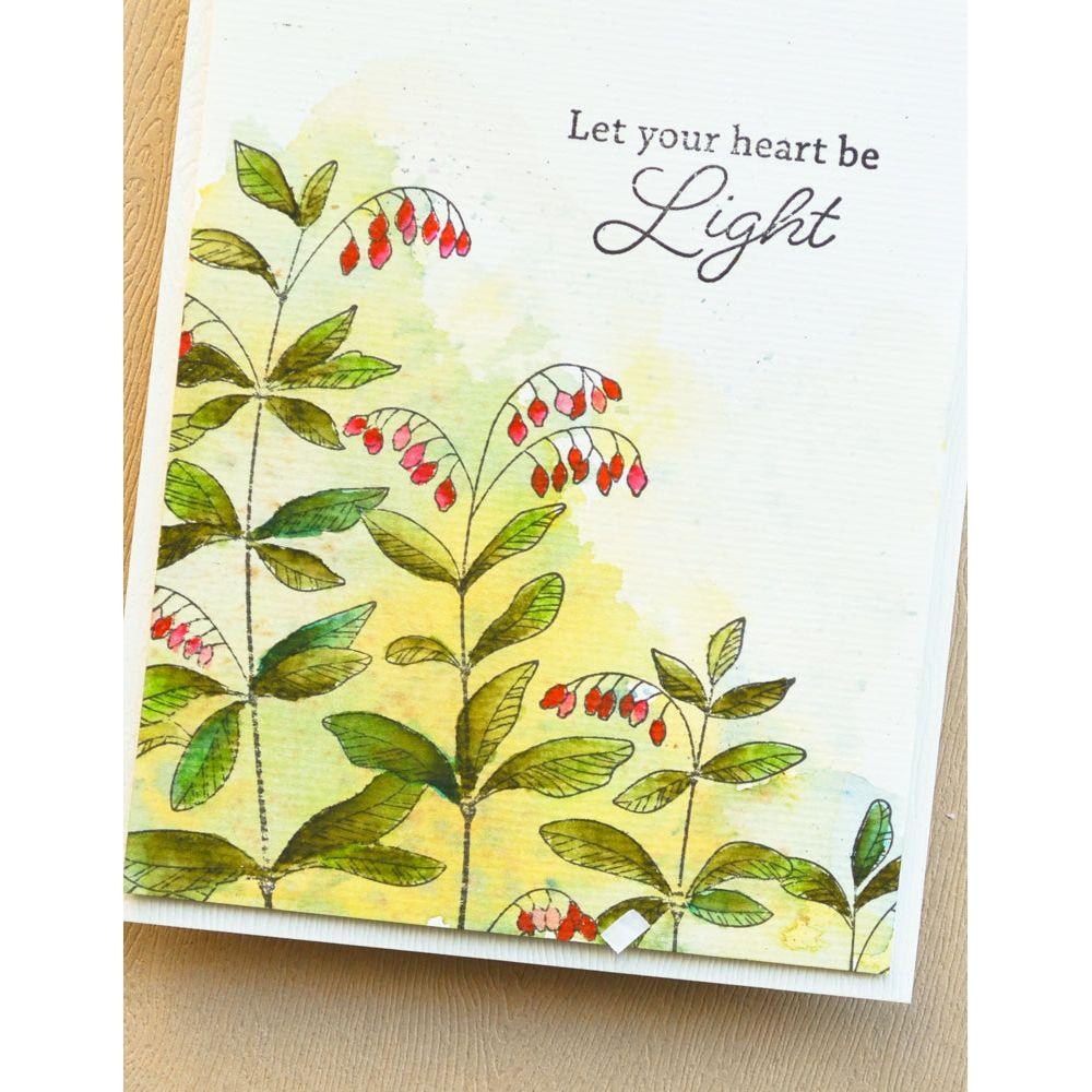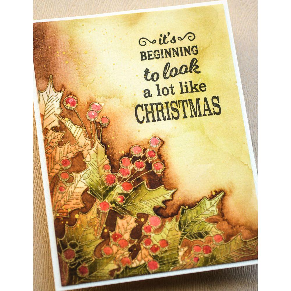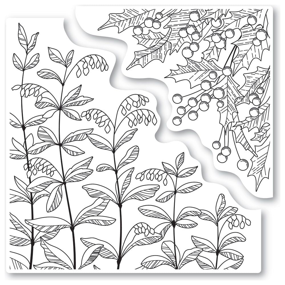 The Memory Box Leaves and Berries Cling Stamps, part of the Yuletide Collection, measure 6 x 6 inches and include 2 pieces. These stamps feature red rubber mounted on cushion, designed for use with a stamping platform. The stamps depict stems of greenery adorned with flowers and leaves filled with berries, with approximate sizes of 5.7 x 5.8 inches and 4.1 x 4.3 inches. They are ideal for adding detailed and festive botanical elements to your crafting projects.