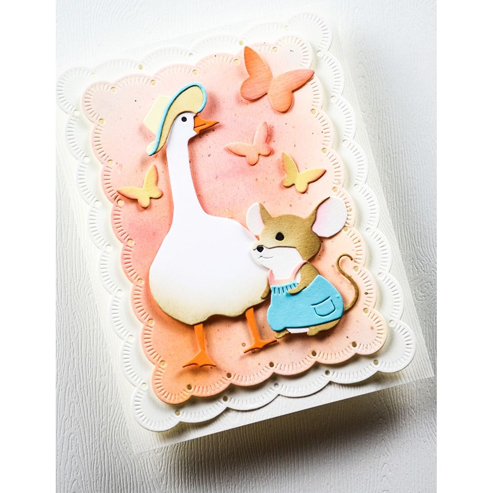 Memory Box Milo Mouse Dies, part of the Cheerful Countryside Collection, are crafted from durable steel and designed to work seamlessly with most die-cutting machines. These wafer-thin dies cut effortlessly through cardstock, felt, fabric, and shrink plastic, making them a great addition to your crafting supplies. This 3-piece die set cuts 9 individual elements to assemble a charming country mouse dressed in a hat and overalls. Approximate sizes: mouse – 1.1 x 0.9 inches, hat – 0.9 x 0.7 inches, overalls – 1.5 x 2 inches. Perfect for creating playful, storybook-style scenes on cards, tags, and paper crafts.