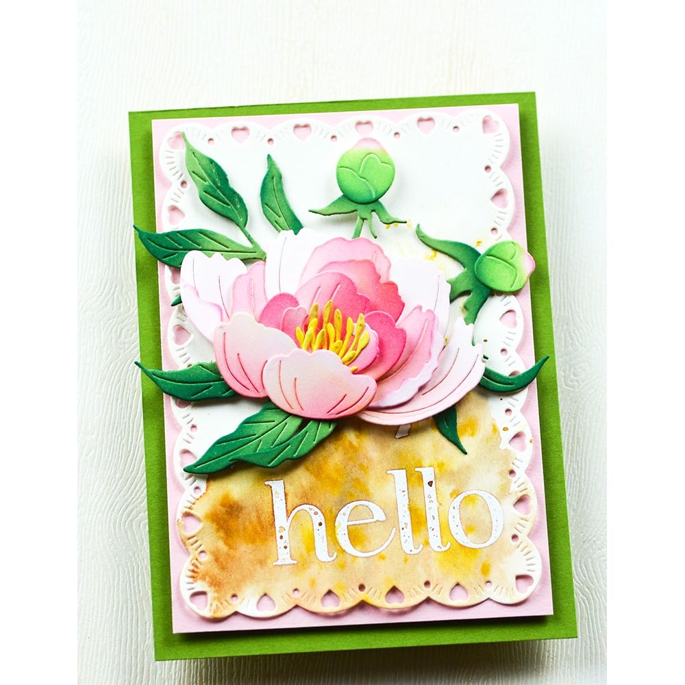 The Memory Box Peony Bud Trio Dies, part of the Peony Collection, are crafted from durable steel and designed for seamless use with most die-cutting machines. These wafer-thin dies cut effortlessly through materials like cardstock, felt, fabric, and shrink plastic, making them a versatile addition to your crafting supplies. This set includes three dies that cut eight individual elements, assembling into elegant leafy stems with three flower buds. The assembled design measures approximately 4.1 x 2.9 inches, with two leaves measuring 0.4 x 1.5 inches each. The three buds measure 0.5 x 0.5 inches, 0.8 x 1 inch, and 1.4 x 1 inch. Perfect for layering, floral arrangements, and adding a delicate botanical touch to cards, scrapbooks, and nature-inspired projects.