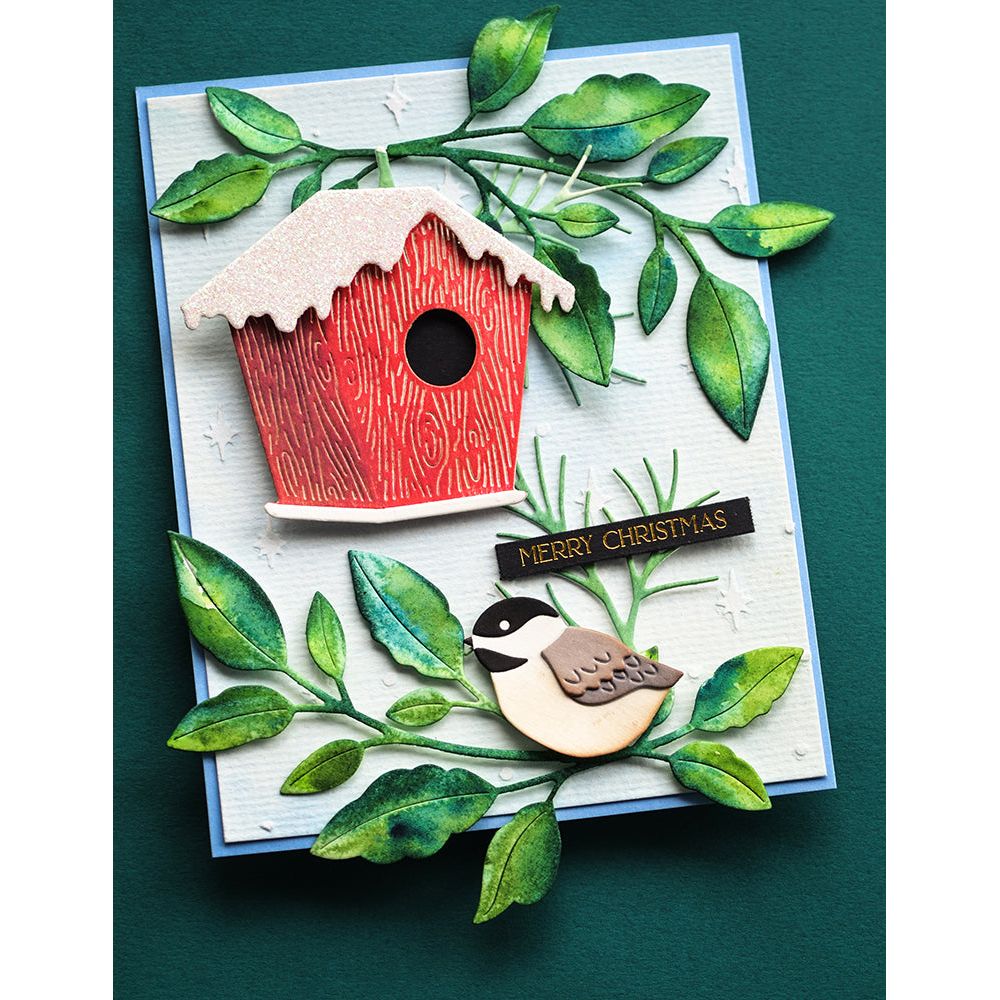 The Memory Box Woodgrain Bird House Dies offer creative opportunities for your crafting projects. These crafting dies are crafted from durable steel and are compatible with almost all die-cutting machines available. They can be used on a variety of materials, including cardstock, felt, fabric, and shrink plastic, allowing you to cut, stencil, emboss, and create a wide range of projects. This set includes 1 die that efficiently cuts out 7 different components, allowing you to create a charming birdhouse with a woodgrain texture and a snow-covered roof. When assembled, the birdhouse measures approximately 2.7 x 2.3 inches, adding a delightful rustic touch to your crafting projects. Whether you're working on winter-themed designs or creating a cozy atmosphere in your projects, these dies are an excellent choice for enhancing your crafting endeavors.