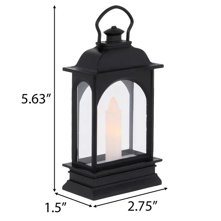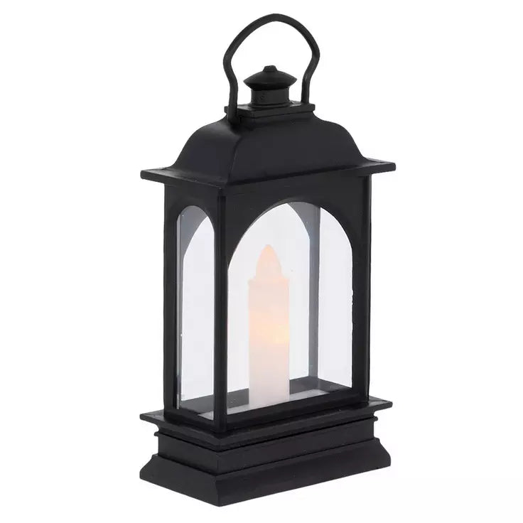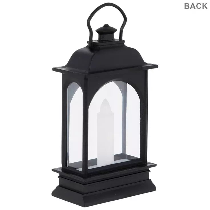 Bring a charming glow to your space with this Light Up Lantern. Crafted with a plastic frame and topped with a petite handle, it features a cozy white LED candle inside that lights up with a simple switch at the base. Perfect for adding a warm touch to your mantel or any cozy corner! Measures 5 inches tall by 2.75 inches wide and 1.5 inches deep (5.63 inches tall including the handle). Runs on 3 replaceable AG13 batteries (included). Colors include black, white, and clear. Comes as a single piece.