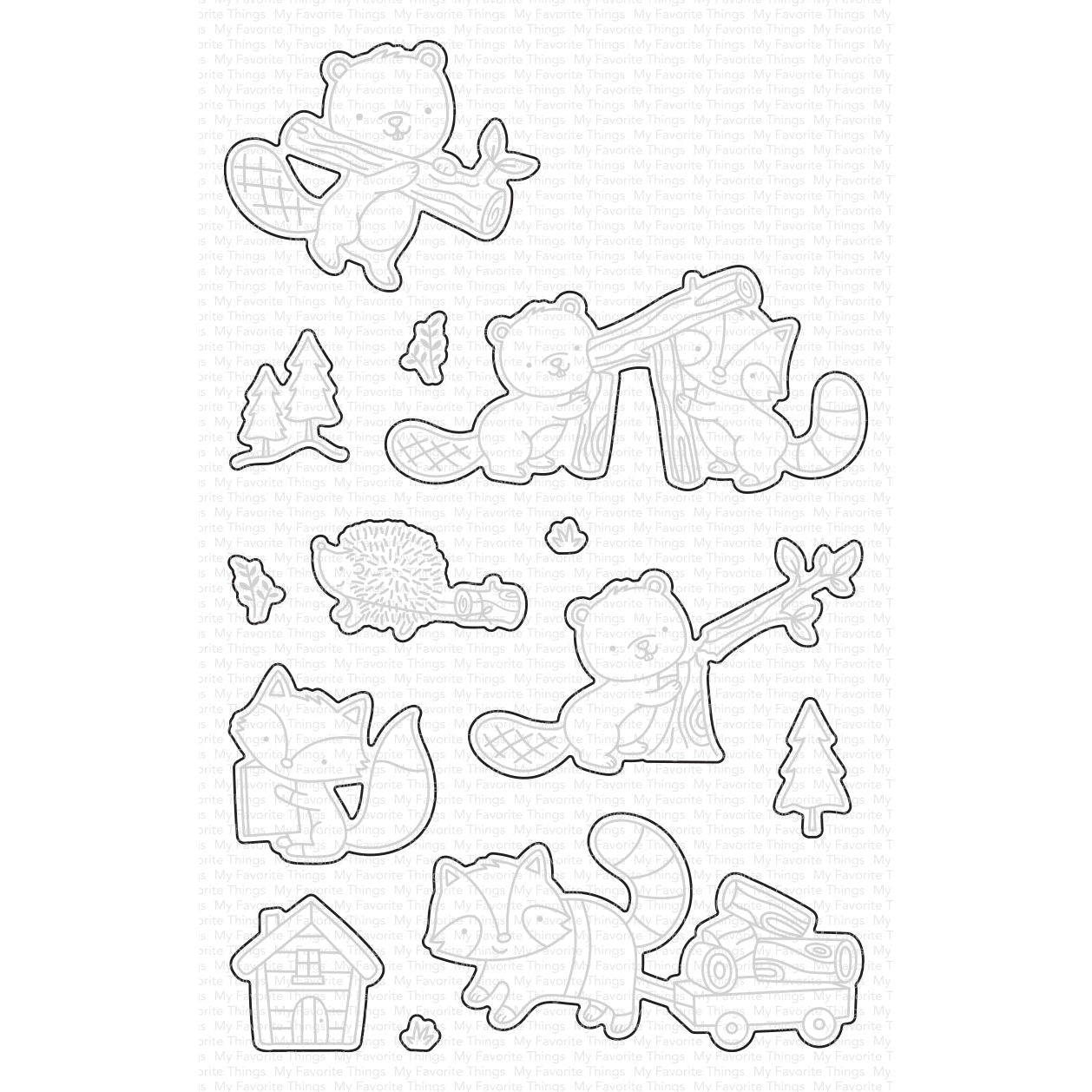 Unlock endless crafting possibilities with the My Favorite Things I Chews You Die-Namics Dies! These dies make it easy to cut out perfectly shaped images, with internal openings allowing you to stamp then cut or cut then stamp. Elements include: log-carrying beaver, tree-gnawing beaver, log-pulling beaver, reading fox, log-toting hedgehog, beaver/raccoon duo, trees, foliage, and a darling little cabin.