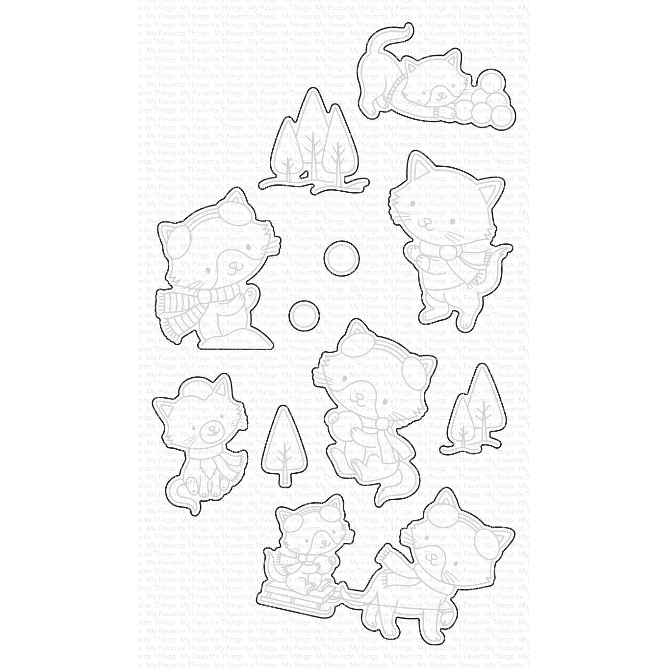 My Favorite Things Winter Kittens Dies Die-Namics is an 11-piece die set that offers precise cutting of shapes and images that coordinate with the Winter Kittens stamp set. This set features open-edge die-cutting that allows you to stamp then cut or cut then stamp for easy removal. Create perfect die-cut images with this set. Please refer to the coordinating stamp set for approximate die dimensions.