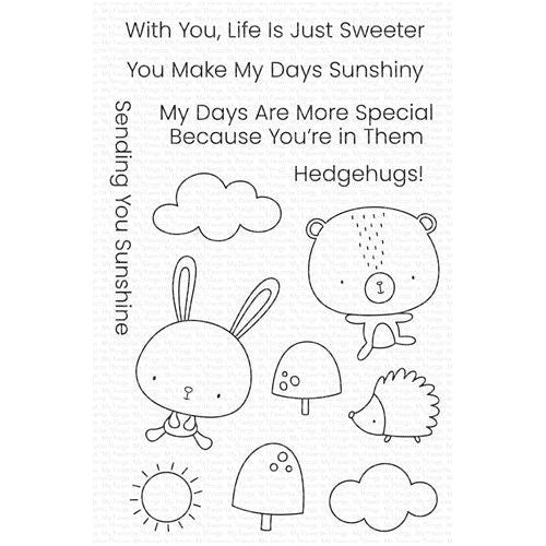 You can't go wrong with cute critters — they're always a fantastic choice for sending smiles across the miles to all your favorite people. Let your friends and loved ones know that they bring sunshine to your life with a huggable bear, floppy bunny, and prickly but still, oh-so-sweet hedgehog. Clouds, a sun, and two toadstools are included to quickly craft a charming little scene. This 4x6 inch clear set contains 13 stamps including the following sentiments: With You, Life Is Just Sweeter, You Make My Days Sunshiny, My Days Are More Special Because You’re in Them, Hedgehugs!, Sending You Sunshine.