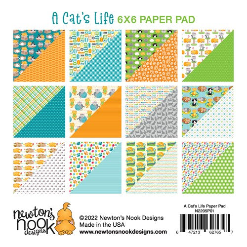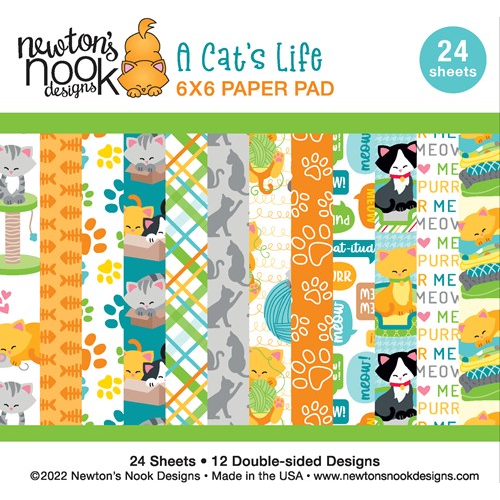 Celebrate feline friends with this kitty themed 6x6 inch paper pad. The papers feature cat themed patterns that are purr-fect for fans of felines! There are 24 sheets of paper, 2 each of 12 different double sided designs, on heavy cardstock with a touch of sheen. Several of the designs feature Newton and his kitty friends and will coordinate perfectly with our collection of cat themed stamp designs! Use them to add fun prints to your cards and scrapbook pages too!