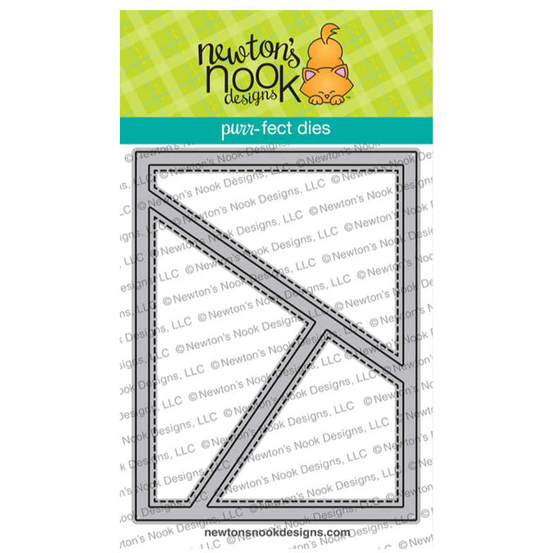 Newton's Nook Designs Card Layout 4 Die is a single background die featuring three large interior cut-out shapes, each with a stitched border for added detail. Perfectly sized for A2 cards, 4 x 5.25 inches, this bold design is ideal for creating eye-catching patterned backgrounds or subtle tone-on-tone texture. The inner shapes are large enough to showcase stamped images. Compatible with most leading die cutting machines.
