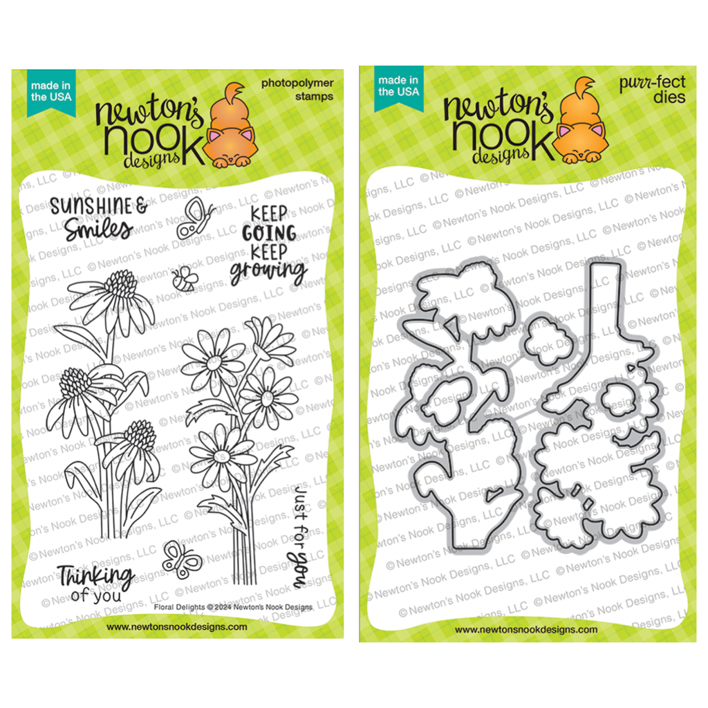 Introducing the Floral Delights Clear Stamp and Die Set from Newton's Nook Designs! This delightful set combines the enchanting Floral Delights Clear Stamp collection with coordinating dies. Imagine your garden in full bloom with the charming daisies and echinacea featured in this set. Use these lovely images to add life to your cards, sending cheerful greetings or thoughtful messages. With 11 stamps and 5 dies included, this set is sure to become a staple in your crafting collection.