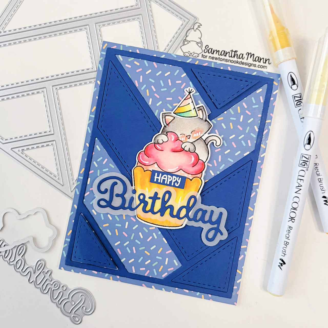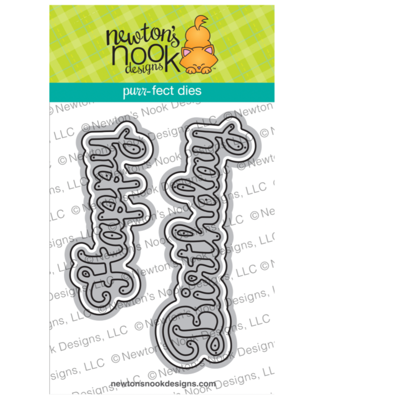 Newton's Nook Designs Happy Birthday Dies includes four dies perfect for adding a cheerful, curly cursive sentiment to your birthday cards. The set features the words Happy Birthday along with coordinating shadow outline dies for layering and added dimension. Compatible with most leading die cutting machines.