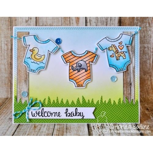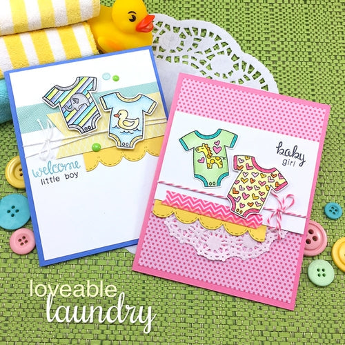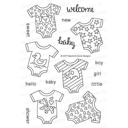 Even if you hate doing laundry you won't be able to resist this cute baby stamp set! Filled with patterned onesies, this 4 x 6 inch stamp set is perfect for making adorable baby cards! These sweet baby clothes will be so fun to color in boy or girl colors but can be gender neutral too! Customize your sentiment for a welcome baby card or for a baby shower!