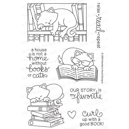 Love to read? Join Newton's Book club in this fun new 4 x 6 inch stamp set! Newton is curling up with his favorite books, whether it's to read them or nap on them, we are not sure. Either way, these adorable stamps will be perfect for creating cards for all the cat and book-lovers in your life! This set also includes some great sentiments that will help you make versatile cards for any time of year! Sit back, relax, and enjoy!