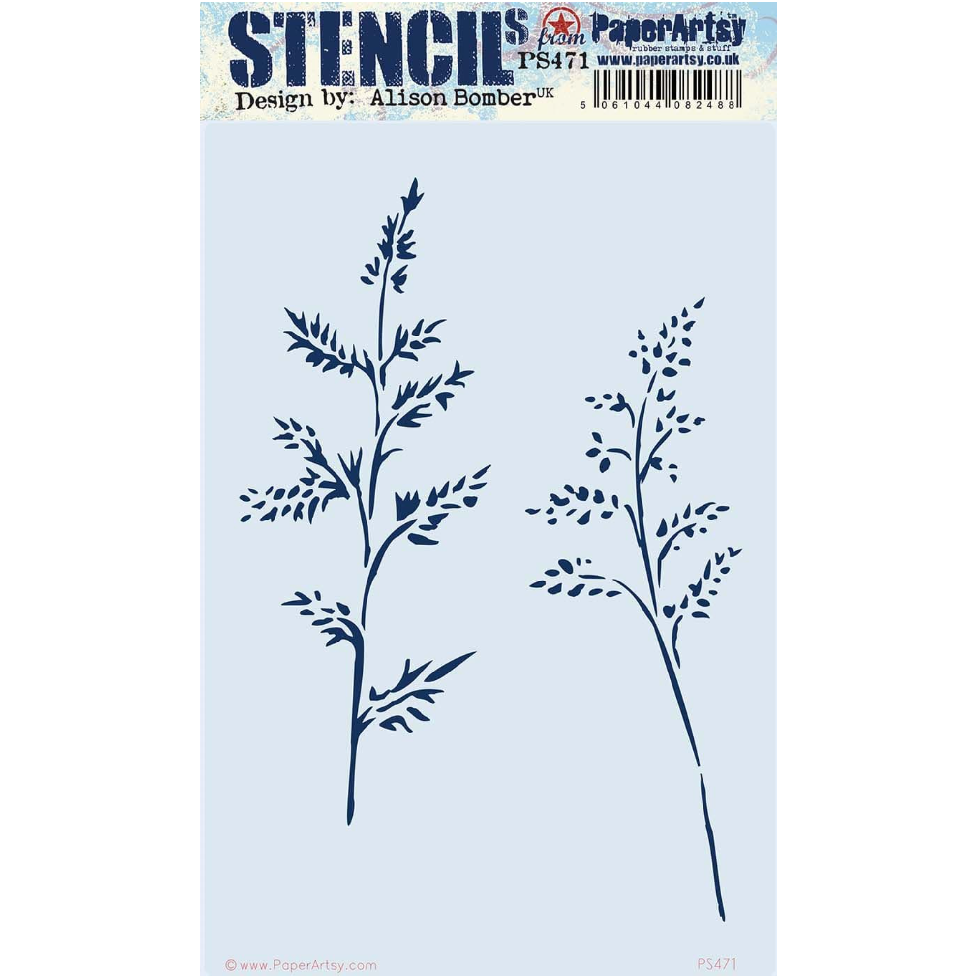 Paper Artsy Alison Bomber Large Stencil is a versatile and high-quality stencil designed by Alison Bomber, an Eclectica3 designer. Ideal for mixed media, journaling, and creative projects, this stencil works with a variety of art mediums, including paint, Grunge Paste, paint sprays, crayons, pastels, pens, chalks, and more. Measuring approximately 6.5 x 9.5 inches, this stencil features two stems of foliage—ideal for adding natural detail and movement to your designs. Use it on paper, canvas, chipboard, and other surfaces to build soft, organic backgrounds or create bold, leafy focal points. A beautiful botanical stencil for layering, adding texture, and enhancing any creative project.