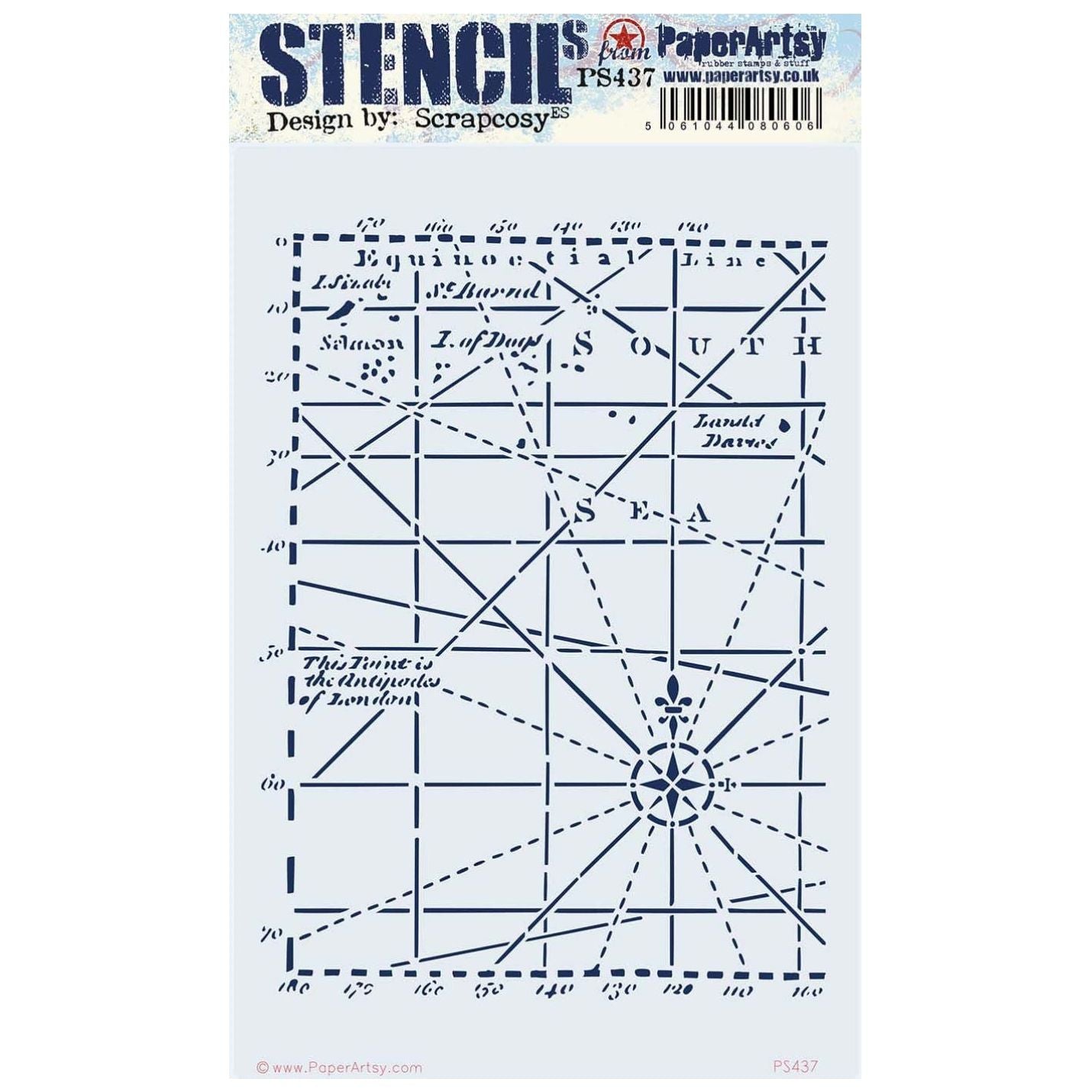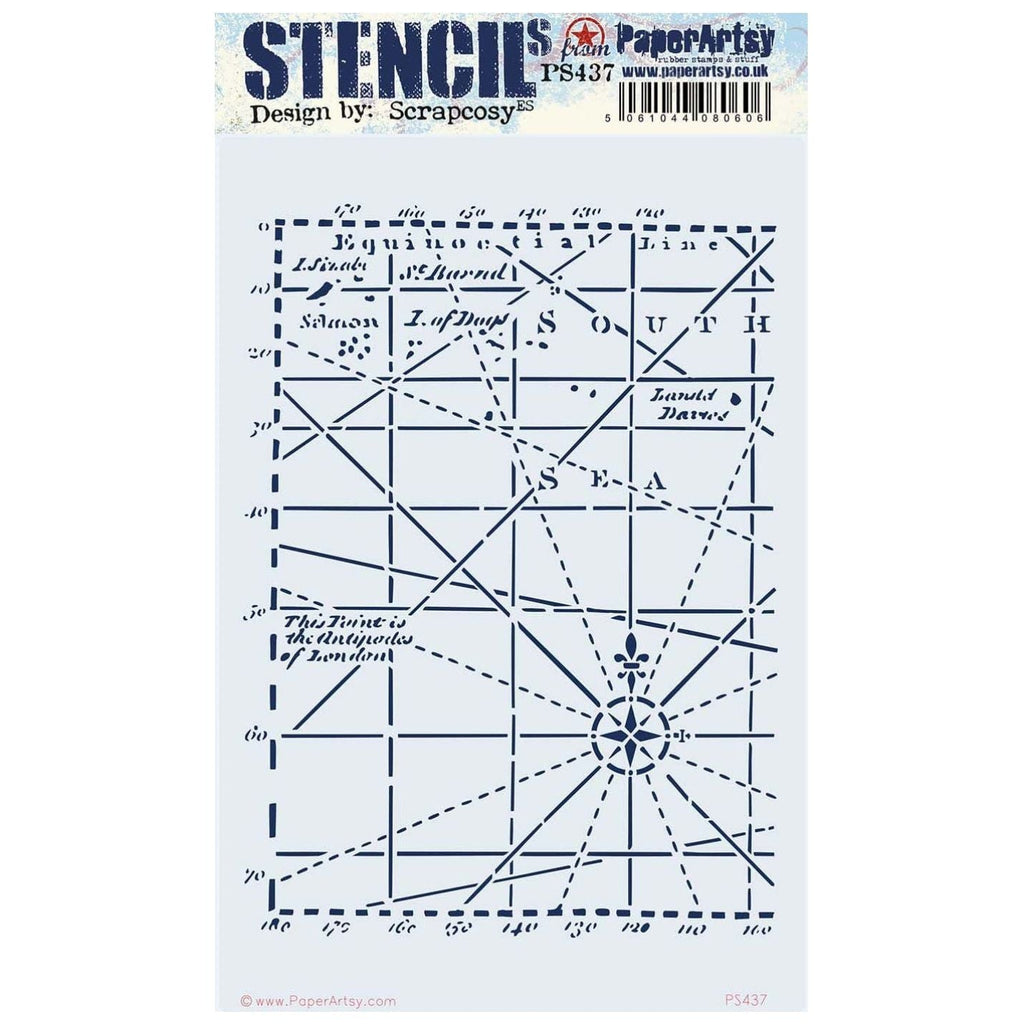 Designed by Raquel Burillo, also known as Scrapcosy, this versatile stencil provides a canvas for limitless creativity. It is compatible with a range of mediums, including paint, Grunge Paste, paint sprays, crayons, pastels, pens, and chalks, making it ideal for use on surfaces such as paper, canvas, and chipboard. Crafted from high-quality, durable plastic, the stencil measures approximately 6.5 x 9.5 inches and features a detailed latitude-longitude map along with the Equinoctial Line.