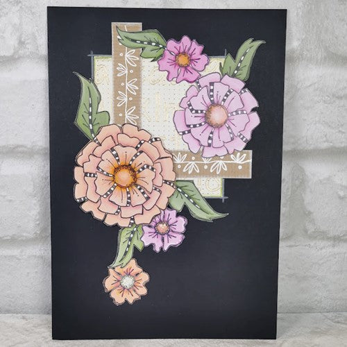 Cling Stamps from Paper Artsy, designed by Jo Firth-Young. Deeply etched red rubber, each stamp individually trimmed and foam mounted. Includes bloom blooms, leaves, alphabet and numbers. Includes 8 stamps on a 6 x 8 sheet.