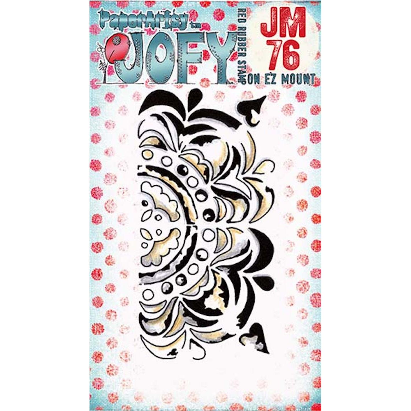 The Paper Artsy JOFY Mini Cling Stamp is a credit-card-sized rubber stamp, measuring approximately 3 x 2 inches. Designed by Jo Firth-Young, an artist known for her uniquec style, this stamp offers versatility for various crafting projects, including card making, artist trading cards, inchies, and more. Mounted on EZ mount, it features a foam cushioning layer on the back for easy use. To use the stamp, simply peel it off the index sheet and position it onto an acrylic block. This particular design features half of a mandala or ornate flower, making it ideal for creating tiled backgrounds or stamping around a page as a border, adding an intricate and decorative touch to your projects.