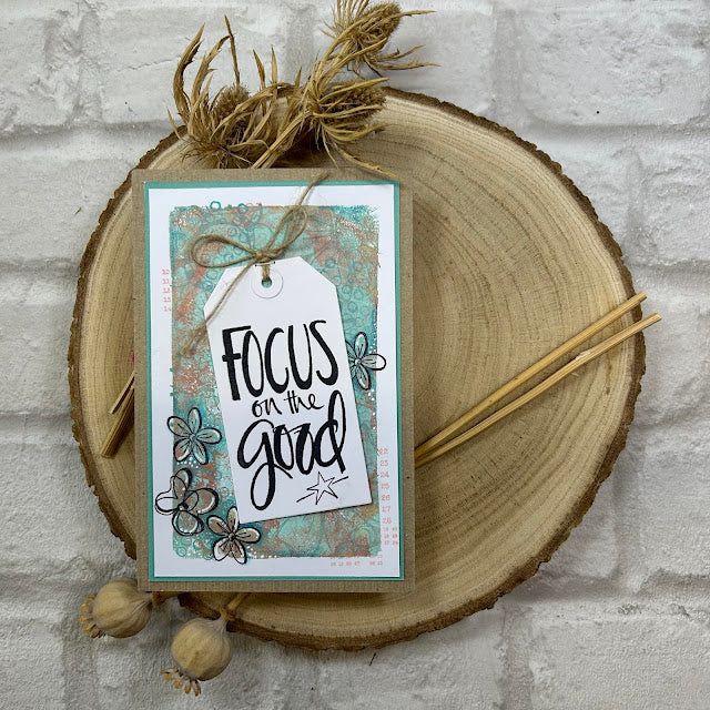 The Paper Artsy JOFY Mini Cling Stamp is a credit-card-sized rubber stamp, measuring approximately 3 x 2 inches. Designed by Jo Firth-Young, an artist known for her unique style, this stamp offers versatility for various crafting projects, including card making, artist trading cards, inchies, and more. Mounted on EZ mount, it features a foam cushioning layer on the back for easy use. To use the stamp, simply peel it off the index sheet and position it onto an acrylic block. The stamp features the uplifting sentiment "Focus on the Good" with a charming star underneath.