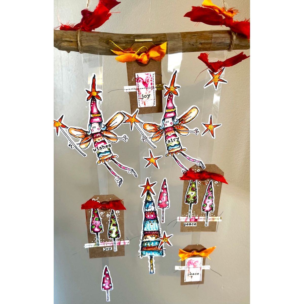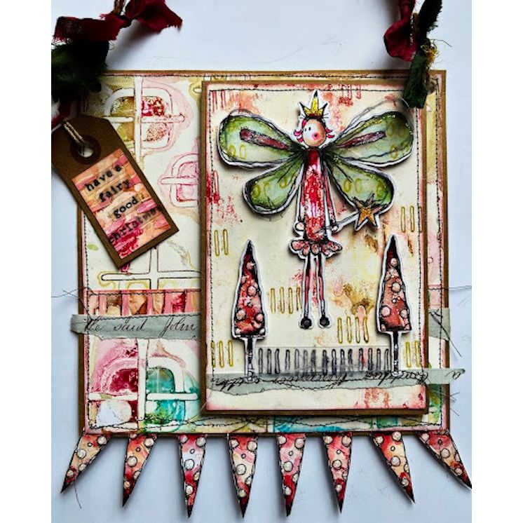 PaperArtsy Kate Crane Cling Stamps are whimsical and richly layered, perfect for adding playful, imaginative detail to your projects. Crafted from deep-etched red rubber, these stamps are precision-trimmed and foam-mounted for ease of use. This 6 x 8-inch set includes 7 cling stamps featuring quirky skinny fairies with wands, wings, and stars on their heads, along with an extra wand, two tall Christmas trees, and the sentiments "have a fairy good Christmas" and "peace, joy and fairy wishes." Ideal for festive cardmaking, journaling, and mixed media, this set adds a charming touch of holiday magic to your projects.