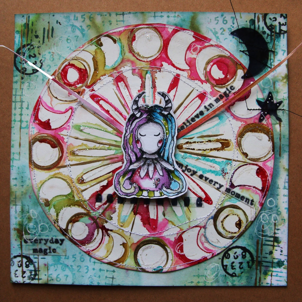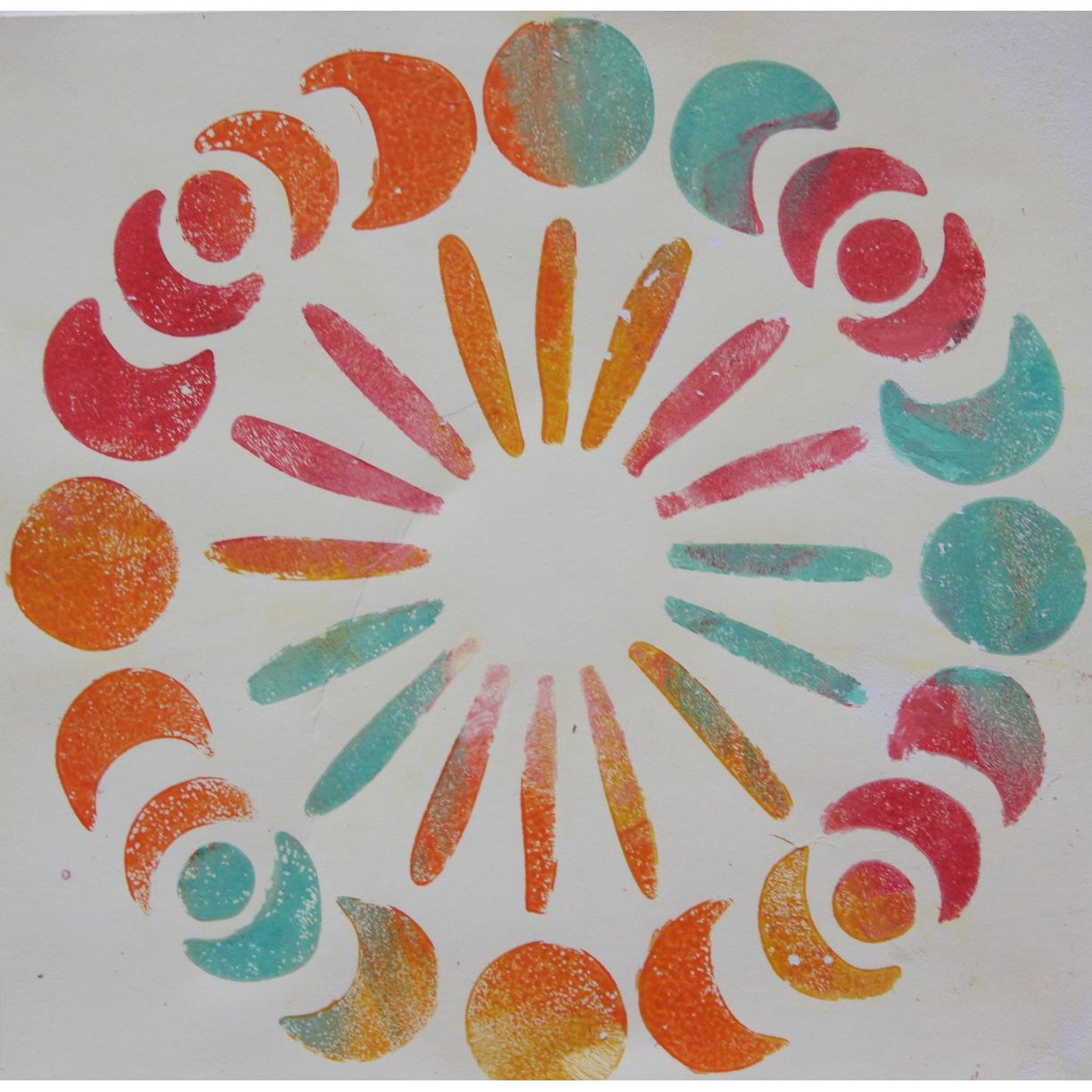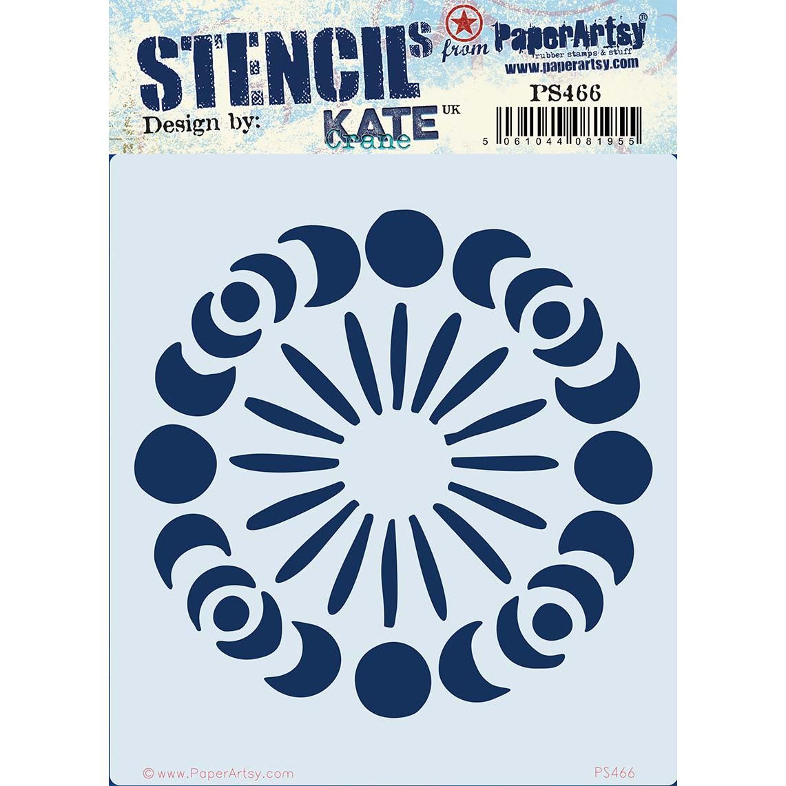 Paper Artsy Stencils are versatile tools suitable for use with a variety of mediums, including paints, pastes, sprays, crayons, pastels, pens, and chalks. This stencil works beautifully on surfaces such as paper, canvas, chipboard, and more. Measuring approximately 6.5 x 7 inches, it features the phases of the moon arranged in a circular pattern, with a radiant sun and long, extended rays at the center—perfect for adding celestial detail to your creative projects.