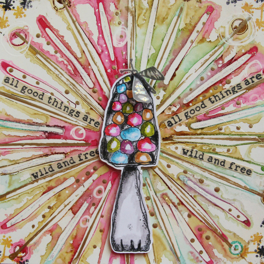 Paper Artsy Stencils are versatile tools suitable for use with a variety of mediums, including paints, pastes, sprays, crayons, pastels, pens, and chalks. This stencil works beautifully on surfaces such as paper, canvas, chipboard, and more. Measuring approximately 6.5 x 7 inches, it features a central circle with radiating lines, each alternating with smaller circles at the ends—ideal for adding dynamic, sunburst-style designs to your projects.