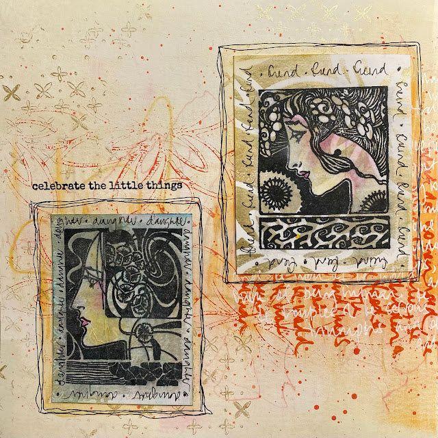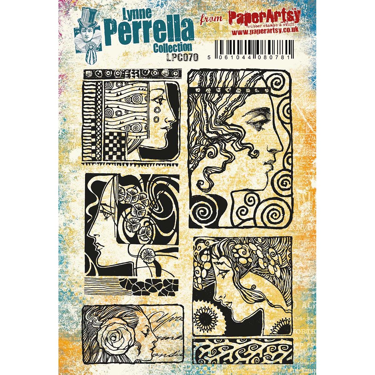 Paper Artsy Lynne Perrella Cling Stamps are part of her Gaze Collection. These stamps are meticulously crafted from deeply etched red rubber, each one trimmed and foam-mounted for ease of use. The collection comprises 5 cling stamps arranged on a 6 x 8-inch sheet. Each stamp features intricate designs, including separate squares and rectangles filled with a woman's profile and rich textural elements.