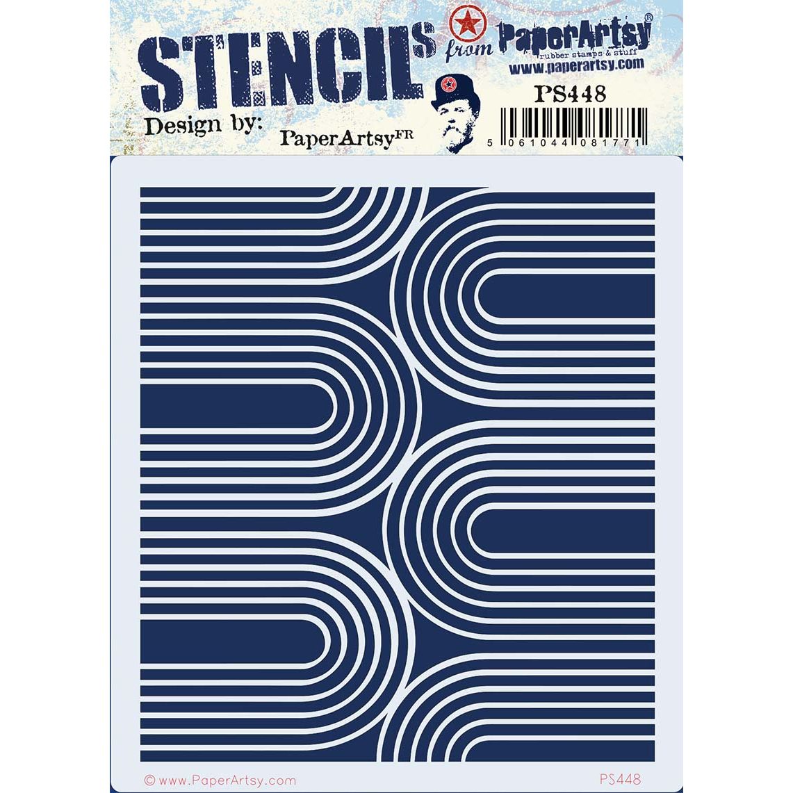 Paper Artsy Stencils are versatile tools suitable for use with a variety of mediums, including paints, pastes, sprays, crayons, pastels, pens, and chalks. This stencil works beautifully on surfaces such as paper, canvas, chipboard, and more. Measuring approximately 6.5 x 7 inches, it features alternating horizontal concentric arches or rainbow patterns, making it ideal for adding dynamic and textured designs to your mixed media, journaling, and crafting projects.