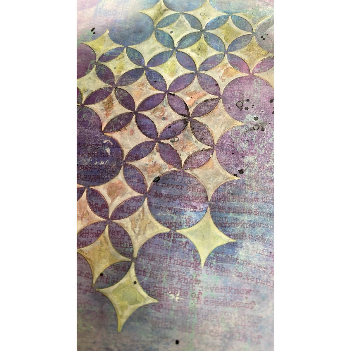 Paper Artsy Stencils are essential tools for adding texture and depth to your creative projects. Designed for use with a variety of mediums, including paints, pastes, sprays, crayons, pastels, pens, and chalks, these stencils work beautifully on surfaces such as paper, canvas, chipboard, and more. Measuring approximately 6.5 x 7 inches, this stencil features an abstract cluster of broken diamond and circle shapes, perfect for layering, backgrounds, and mixed media applications. Whether you’re crafting, journaling, or creating fine art, this versatile stencil adds unique, eye-catching patterns to your designs.