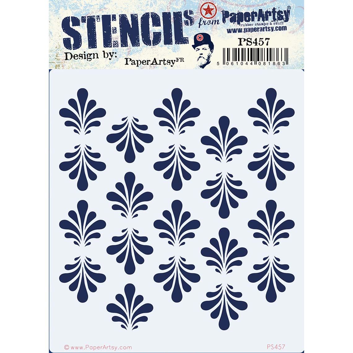 Paper Artsy Stencils are versatile tools suitable for use with a variety of mediums, including paints, pastes, sprays, crayons, pastels, pens, and chalks. Designed to work beautifully on surfaces such as paper, canvas, chipboard, and more, this stencil measures approximately 6.5 x 7 inches. It features striking columns of fan embellishments, alternating in an up-and-down pattern, perfect for adding intricate texture and movement to your creative projects. Ideal for mixed media, journaling, scrapbooking, and other artistic applications.