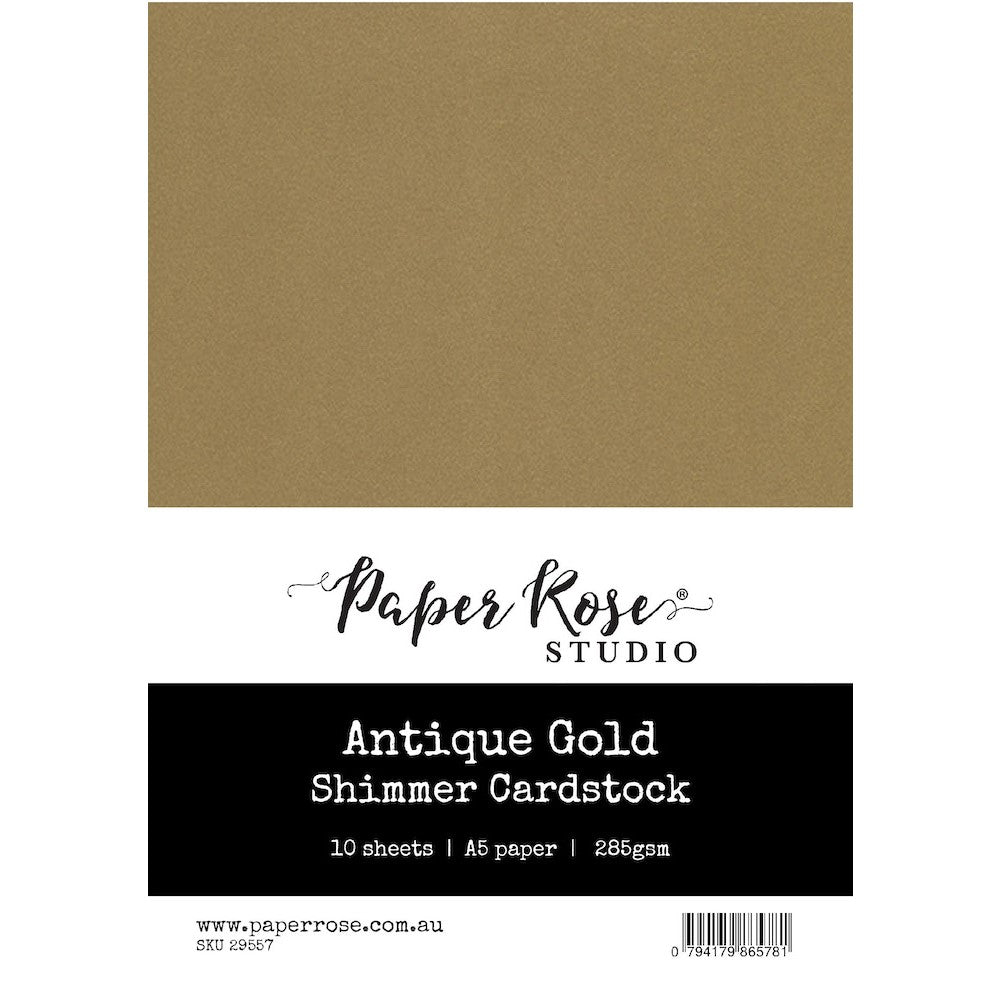 The Paper Rose Silver Antique Gold A5 Cardstock is a pack of ten sheets of beautiful heavyweight paper with a stunning shimmer finish. Each sheet measures approximately 8.25 x 5.875 inches and is 300gsm, making it perfect for creating card bases and die cutting. The shimmer finish adds an elegant touch to your projects, and the bright white color of the paper is perfect for a variety of crafting projects. This cardstock is an excellent choice for adding some sparkle and sophistication to your crafts.