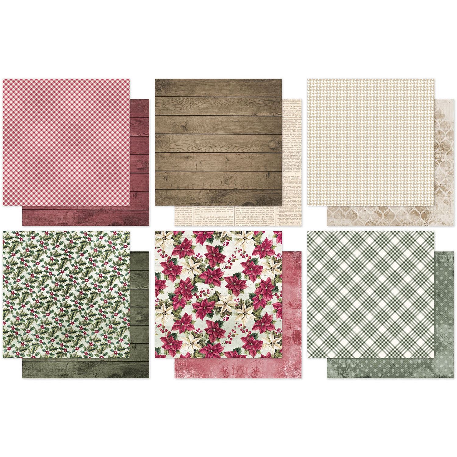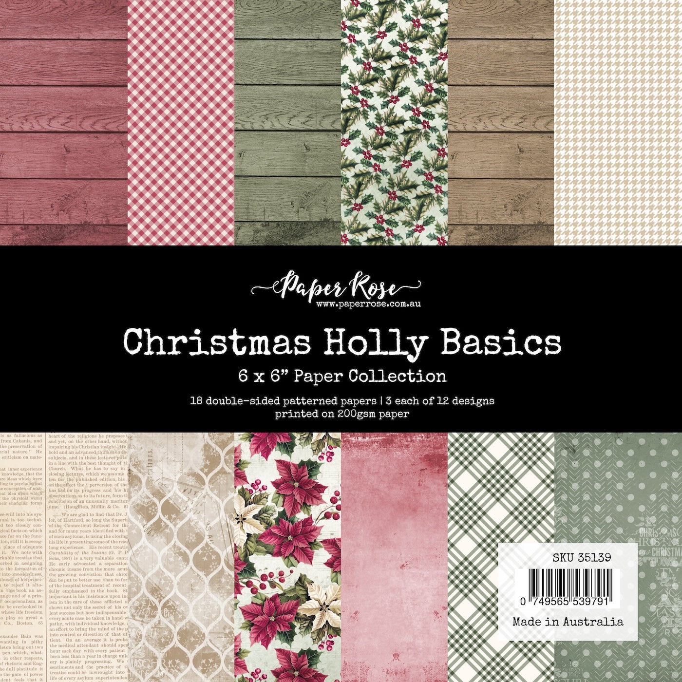 Paper Rose Christmas Holly Basics Paper is a versatile addition to your crafting collection. This 6 x 6-inch paper pack includes 18 double-sided sheets made from sturdy 200gsm paper, providing a durable and high-quality base for cardmaking, scrapbooking, and other creative projects. With 12 unique designs, each repeated three times, the collection features wooden slats in brown, red, and green, along with beautiful red and white poinsettias paired with greenery and berries. You’ll also find holly leaves, literary excerpts, and a variety of patterns such as green plaid, brown houndstooth, ogee, green polka dots, red gingham, and more.