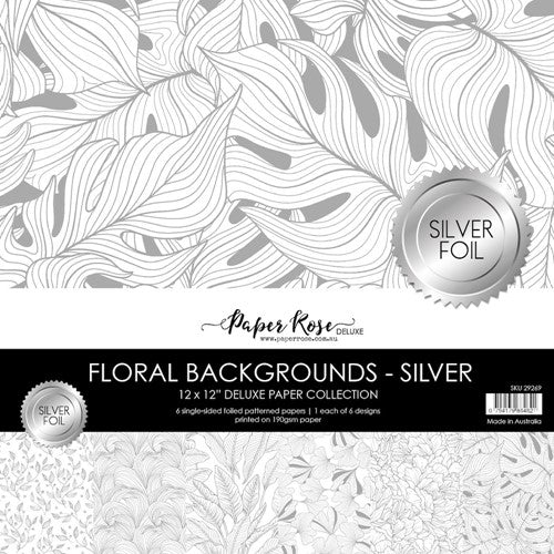 Paper Rose Floral Backgrounds Silver Foil 12x12 Paper 29269*