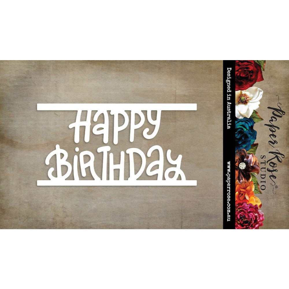The size of the die set is 5.75 x 4.5 inches, and it includes a single design: the words Happy Birthday with a bar on one side of each word to create a fun border. The die measures approximately 4.25 x 2 inches and is perfect for creating a decorative border on your projects.