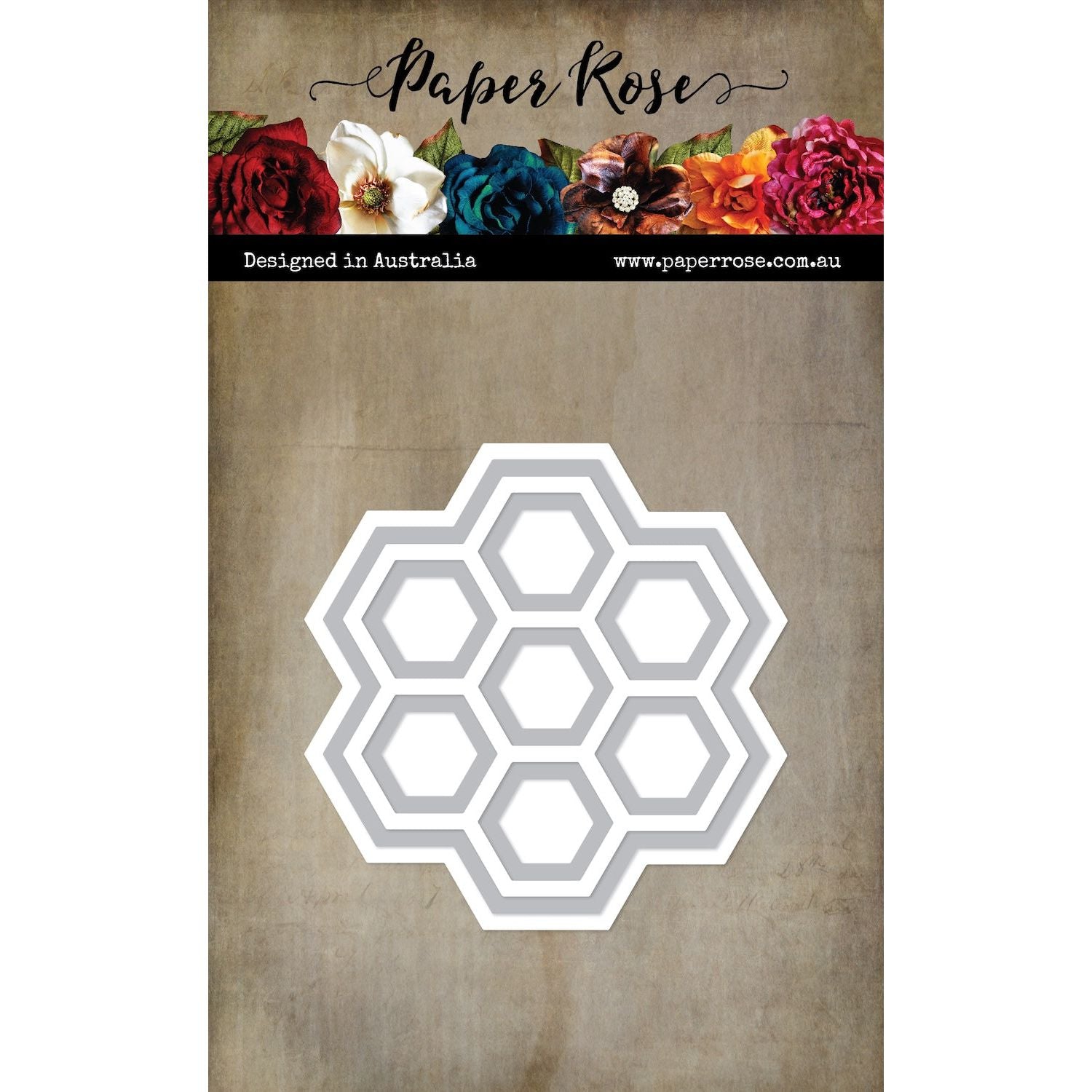 The Paper Rose Honeycomb Trio Layered Dies are part of the Bees and Butterflies Collection. This 3-piece wafer-thin die set features two hexagon cluster designs in varying sizes, along with a coordinating outline die for layering and added dimension. Compatible with most die-cutting machines, the largest die measures approximately 3.25 x 3.25 inches. Perfect for nature-themed, honeybee, or geometric projects.