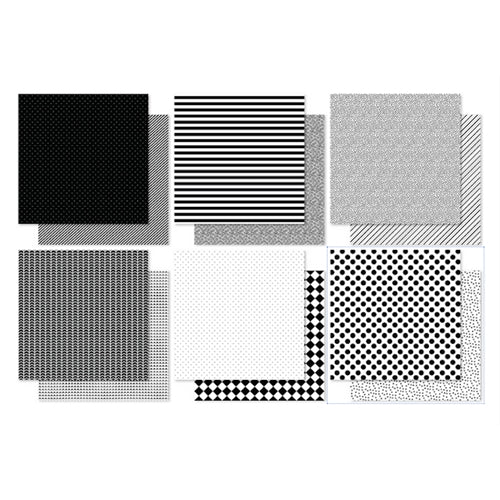 18 double-sided patterned papers. 3 each of 12 designs. Sheets are approximately 6 x 6 inches. 200gsm.
