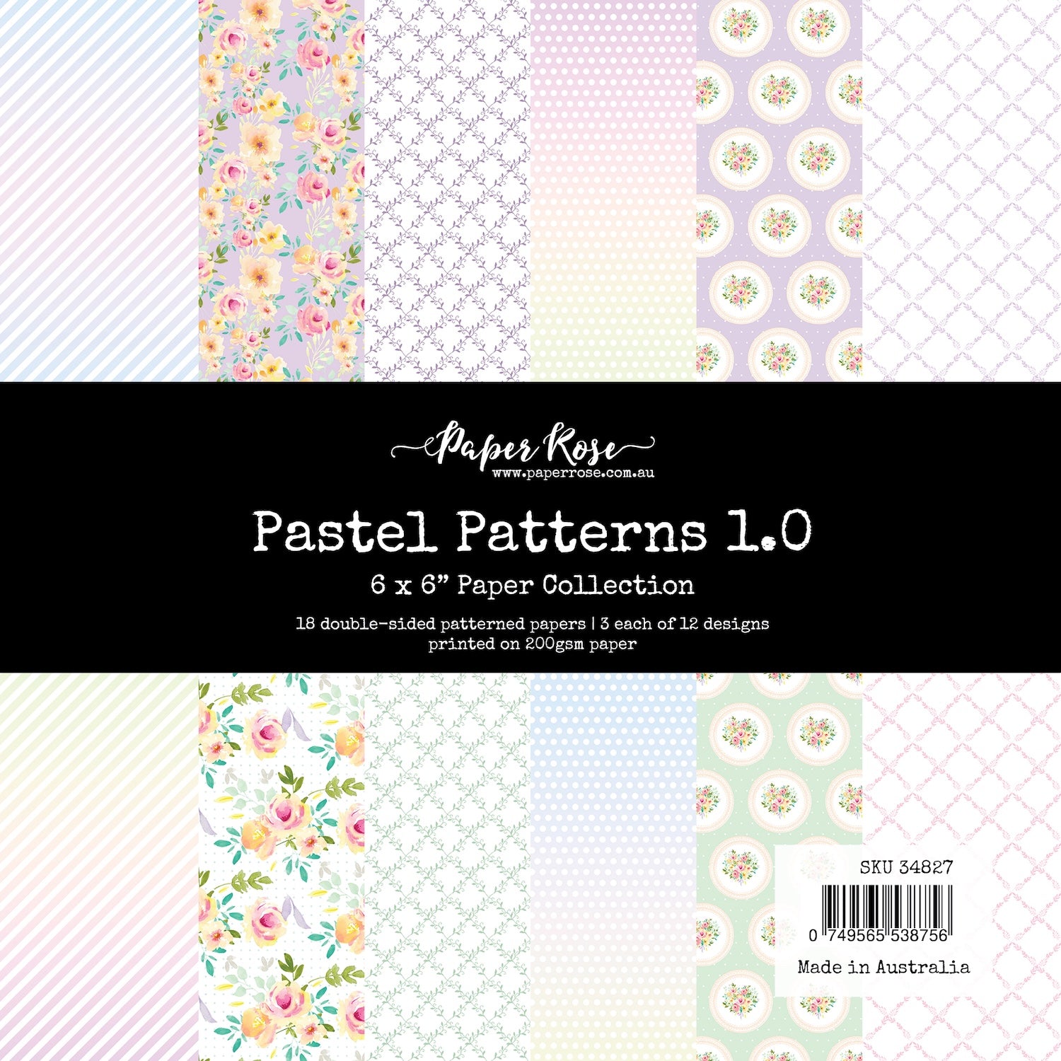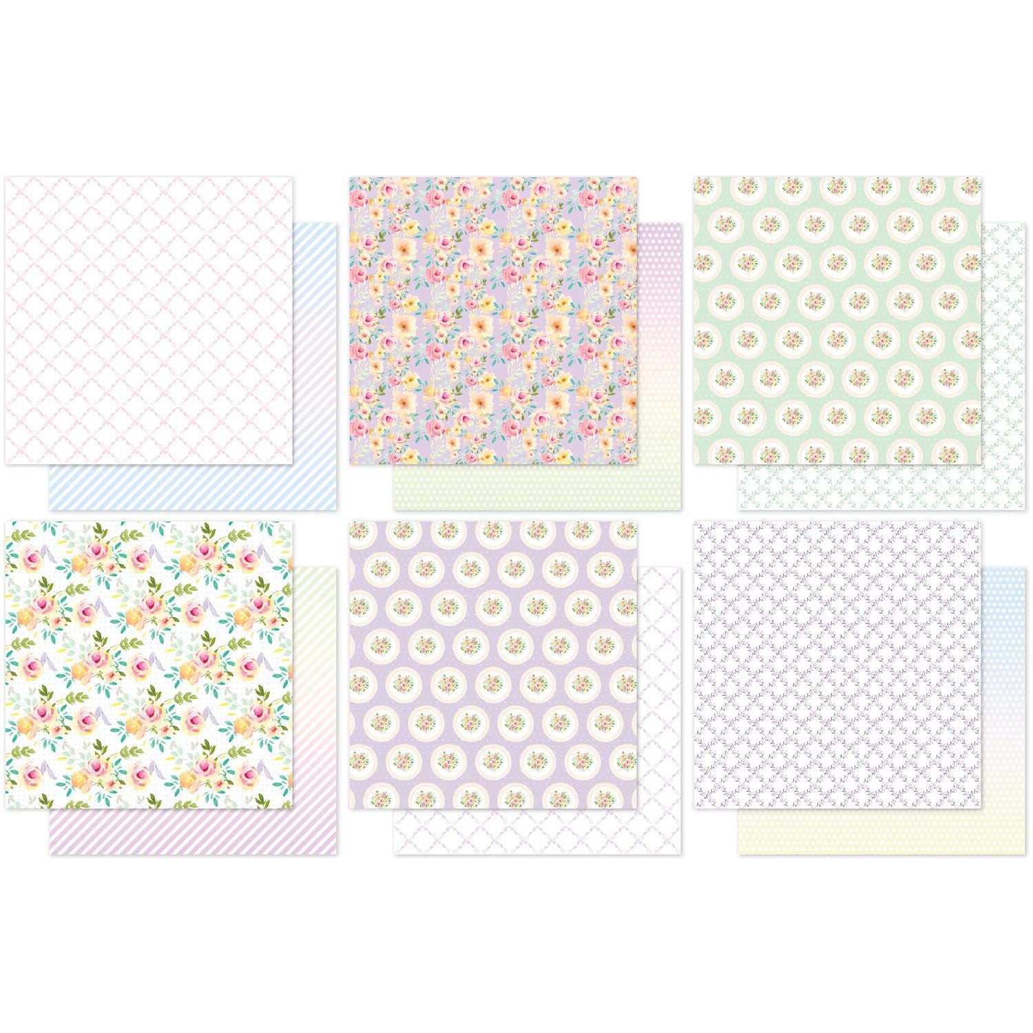 Paper Rose Pastel Patterns 1.0 Paper Pack offers soft, elegant designs perfect for a variety of creative projects. This 6 x 6-inch paper pack includes 18 double-sided sheets made from sturdy 200gsm paper, providing a durable and high-quality base for cardmaking, scrapbooking, and other creative projects. With 12 unique designs, each repeated three times, the collection features graduated diagonal stripes, floral lattice designs, polka dots, and delicate bouquets, making it ideal for cardmaking, scrapbooking, and beyond.