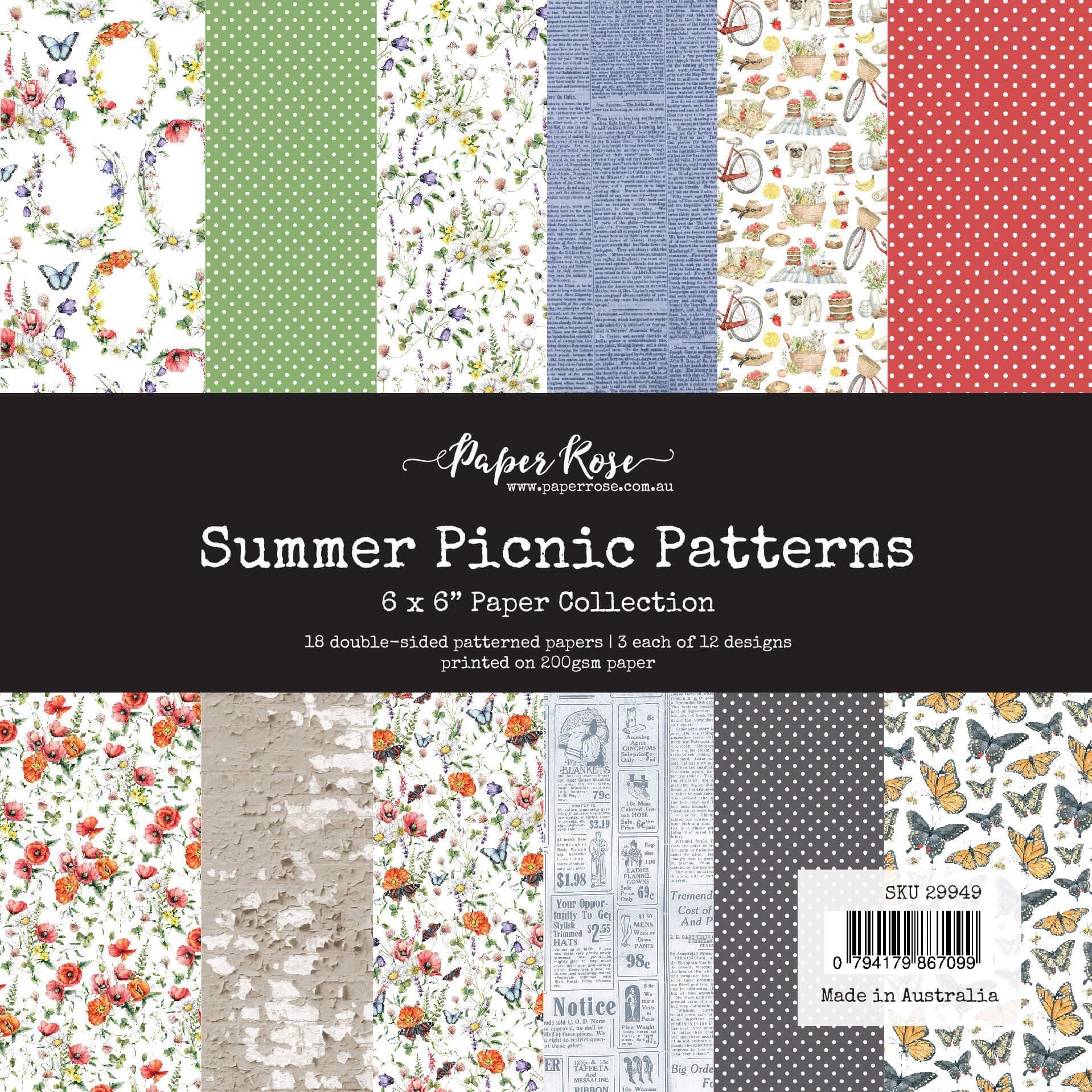The Summer Picnic Patterns 6x6 Paper pack from Paper Rose is a versatile and high-quality paper pack for your crafting projects. This pack features 18 double-sided patterned papers, with three sheets of each of the 12 unique designs. Measuring approximately 6 x 6 inches, these papers have a sturdy weight of 200gsm, making them perfect for various crafting projects.