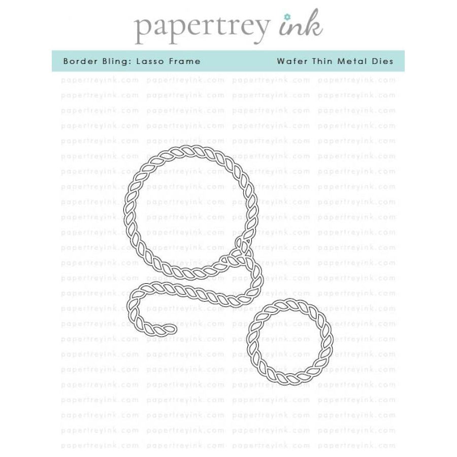 Papertrey Ink Border Bling: Lasso Frame Dies is a wired set of two dies that create a circular frame styled like a coiled lasso rope—perfect for adding a rustic or western touch to your designs. The larger frame measures approximately 3.25 x 4.5 inches, and the smaller inner frame is about 2.13 inches in diameter.
