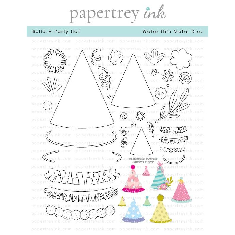 The Papertrey Ink Build A Party Hat Dies set includes 32 wired shapes, offering everything needed to create festive, customizable party hats for any celebration. With a variety of hat sizes, trims, and decorative elements like flowers and leaves, this set is perfect for adding playful details to cards, gift tags, party decor, and more. For more fun use the Papertrey Ink Build A Party Hat Stencils - 0082, sold separately, to add fun details!