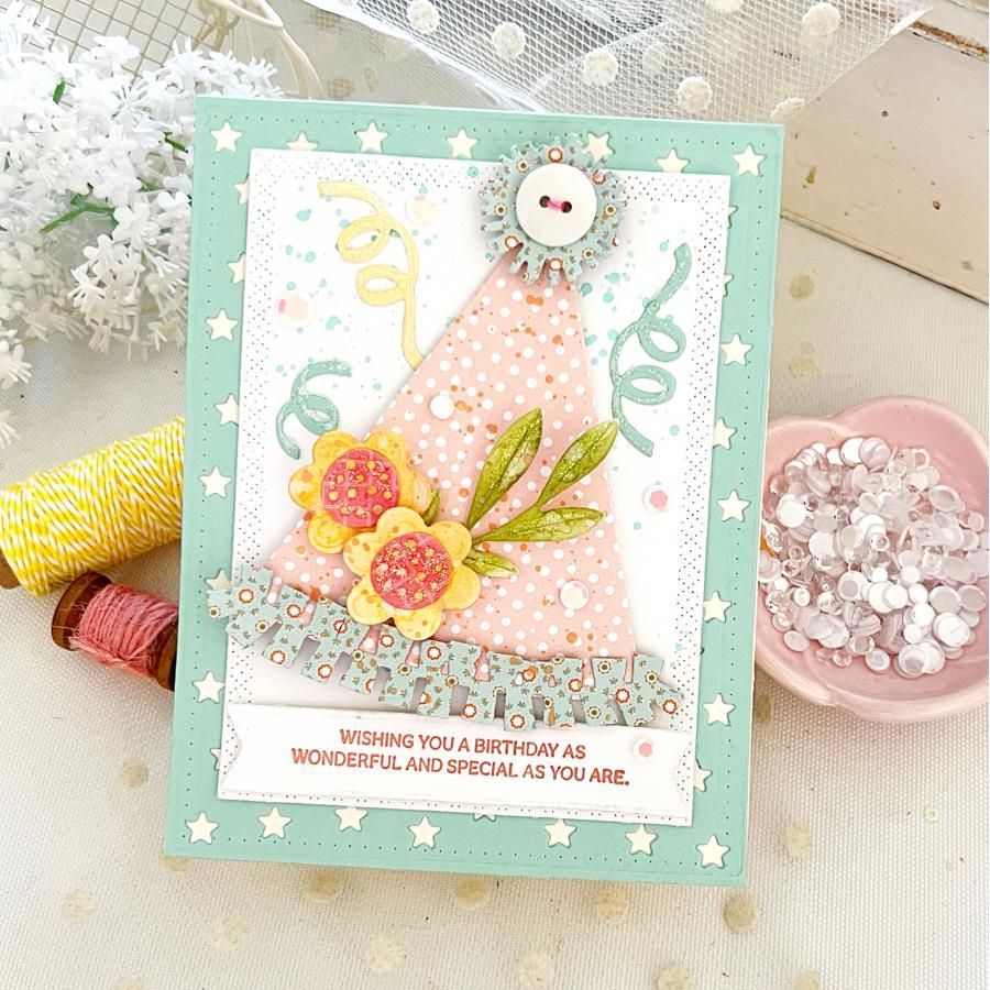 This set is ideal for bringing fun, dimensional party hats to life in your paper crafting projects.