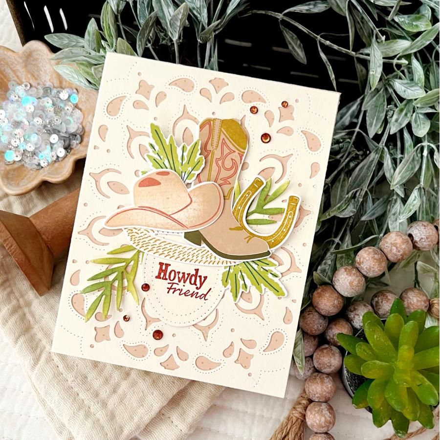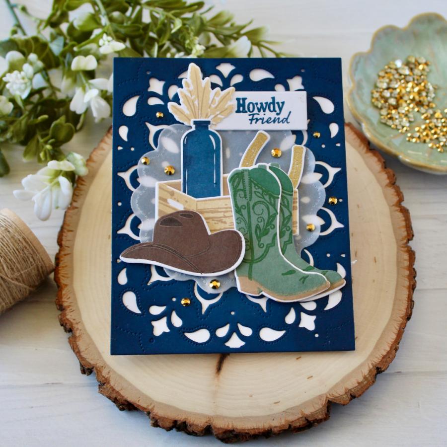 Papertrey Ink Cover Plate: Bandana Die is a 4.25 x 5.5 inches A2-sized background die that covers an entire card front. It cuts an intricate bandana-inspired pattern, adding bold, detailed texture and a touch of western charm to your projects.
