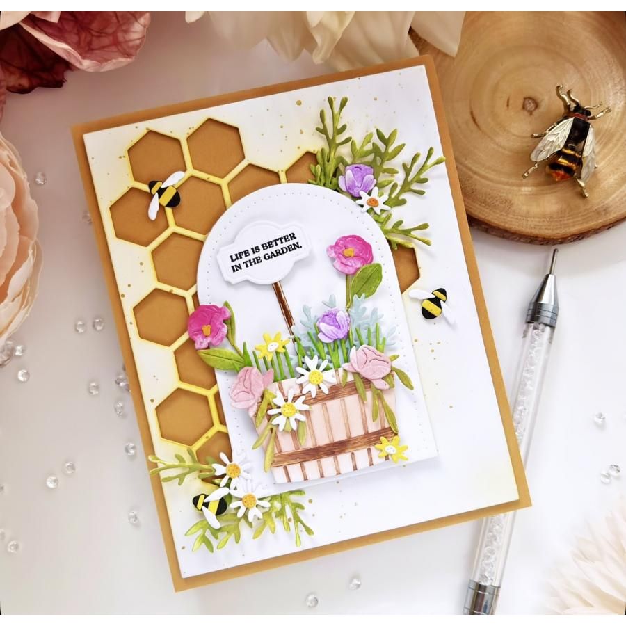 Papertrey Ink Cover Plate Honeycomb Die is a single background die featuring a geometric honeycomb cluster pattern. Measuring approximately 4.25 x 5.5 inches, it’s A2 sized and perfect for adding bold, modern texture to your card fronts.