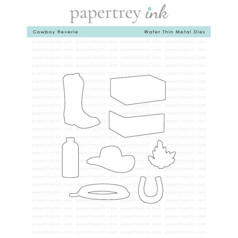 Papertrey Ink Cowboy Reverie Dies is a set of 8 outline dies designed to coordinate with the Cowboy Reverie Clear Stamps 1639 sold separately. These dies are compatible with most die cutting machines and cut out a variety of charming western-themed images to add depth and dimension to your projects.
