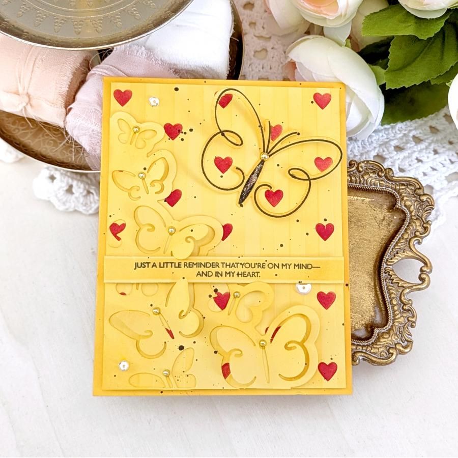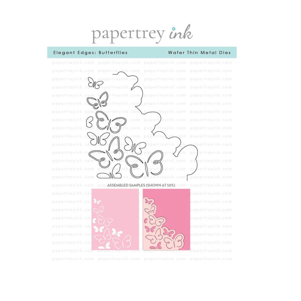 The Papertrey Ink Elegant Edges Butterflies Dies set includes two beautifully coordinated dies. One cuts an intricate open design featuring a flutter of butterflies, while the other cuts a solid outline for layering and accenting your projects. Use them together or separately to add graceful dimension to cards, tags, and more.