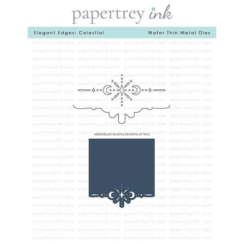 Papertrey Ink Elegant Edges Celestial Dies feature a border edge design that is truly out of this world. With intricate details like moons, stars, and vintage lines, these dies are the perfect accent for your projects. The edges measure approximately 3.875 x 1.375 inches and 4.375 x 0.75 inches.