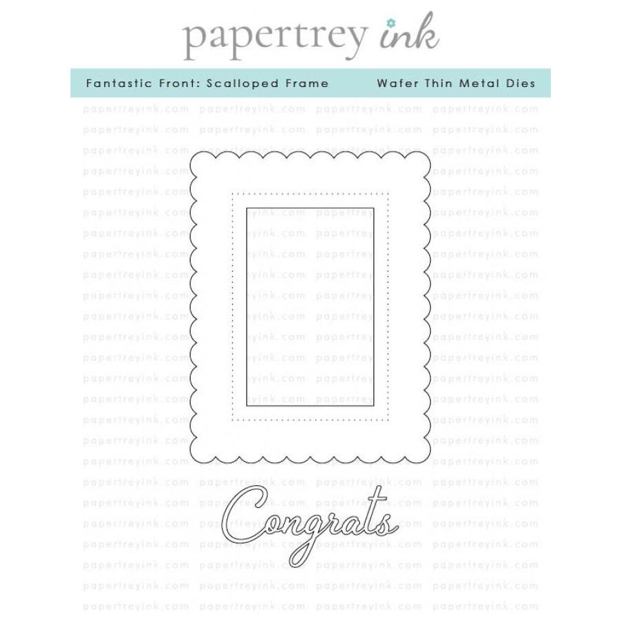 This fun frame set from Papertrey Ink includes two dies, one thick scalloped frame with a dotted emboss detail, and the script font word congrats.Approximate Measurements: