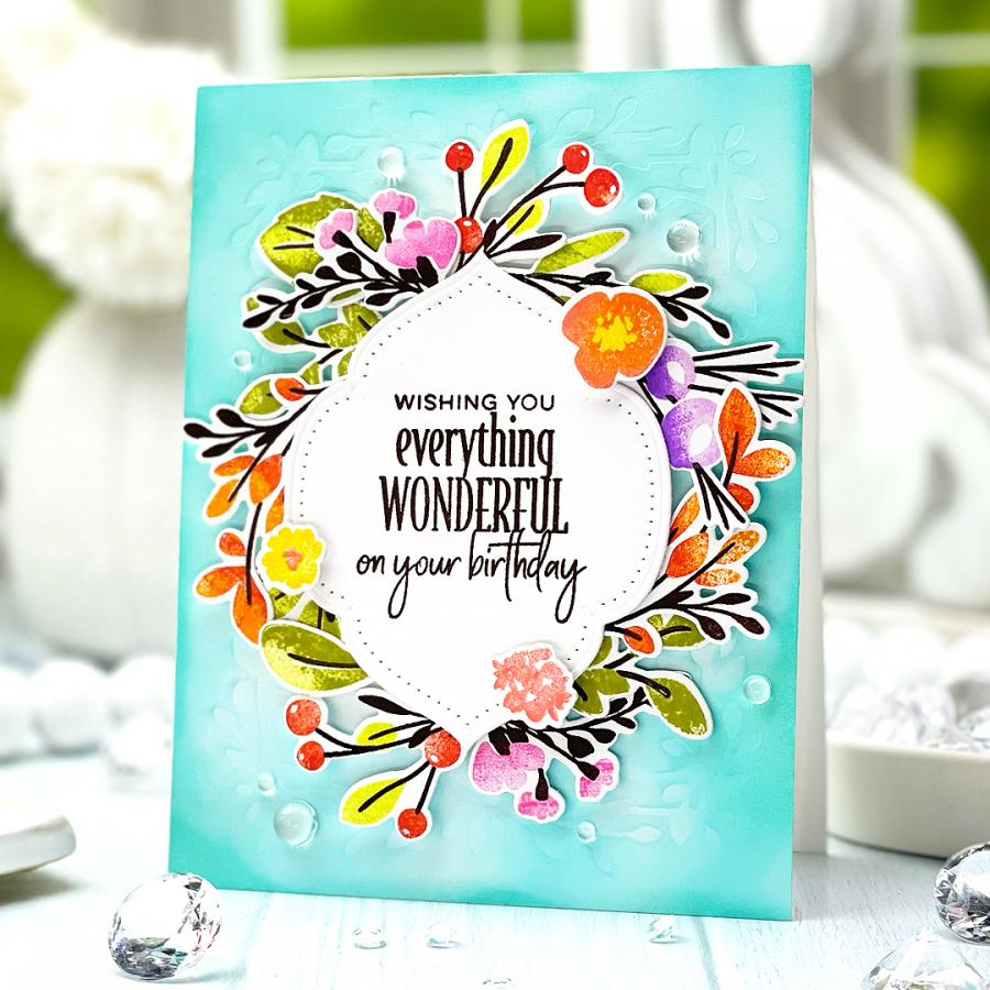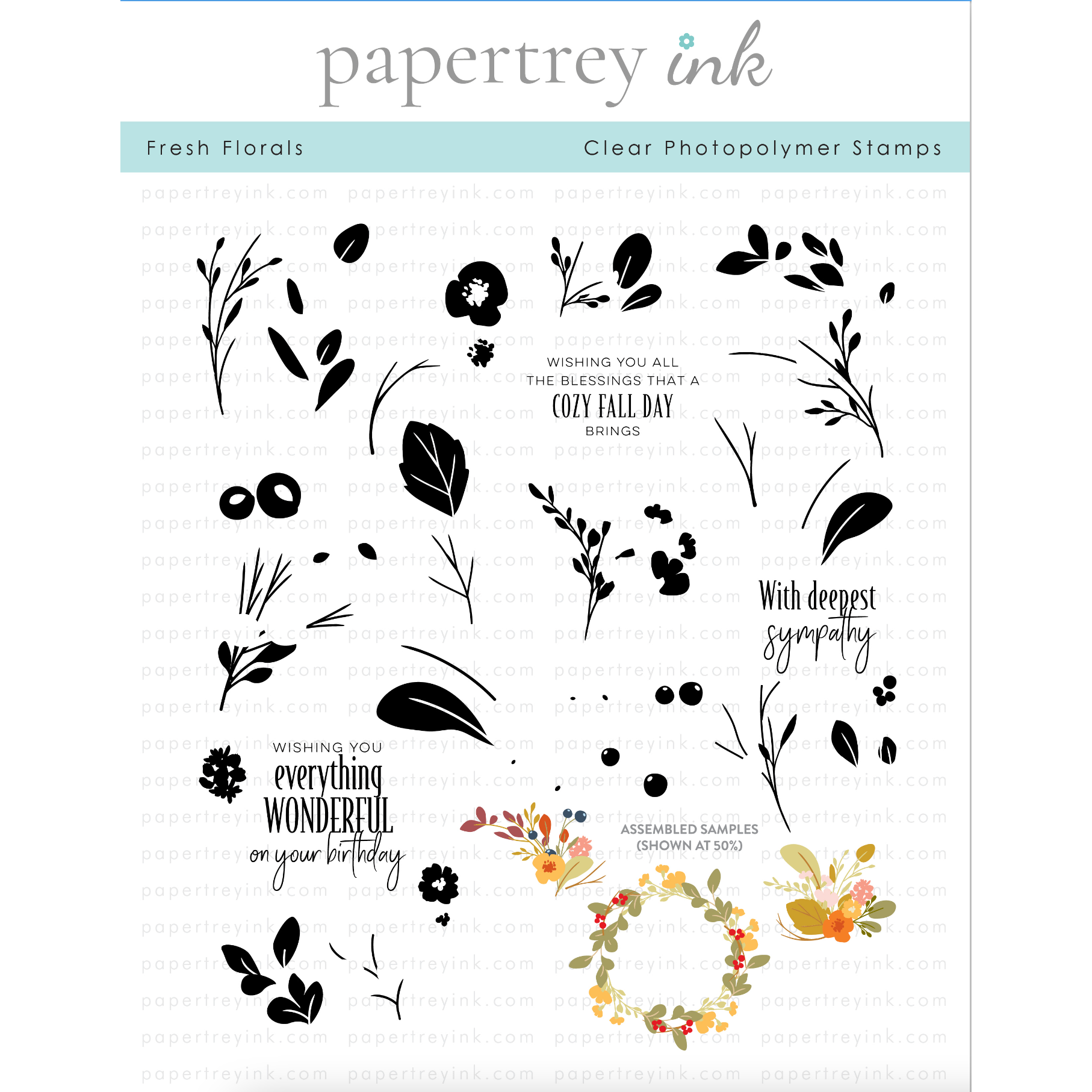 The Papertrey Ink Fresh Florals Clear Stamps set allows you to create beautiful floral arrangements for various occasions. You can use these stamps to design borders, corners, custom wreaths, bouquets, and pair them with thoughtful sentiments for perfect cards.
