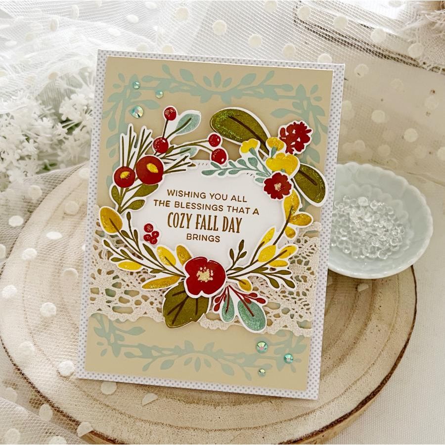 Wishing You All The Blessings That A Cozy Fall Day Brings sentiment: Just under 1.75 inches wide and just over 0.75 inches tall.