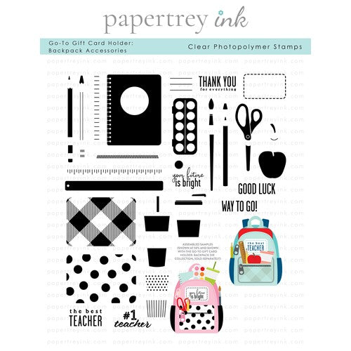 Papertrey Ink GO TO GIFT CARD HOLDER BACKPACK ACCESSORIES Clear Stamps 1428